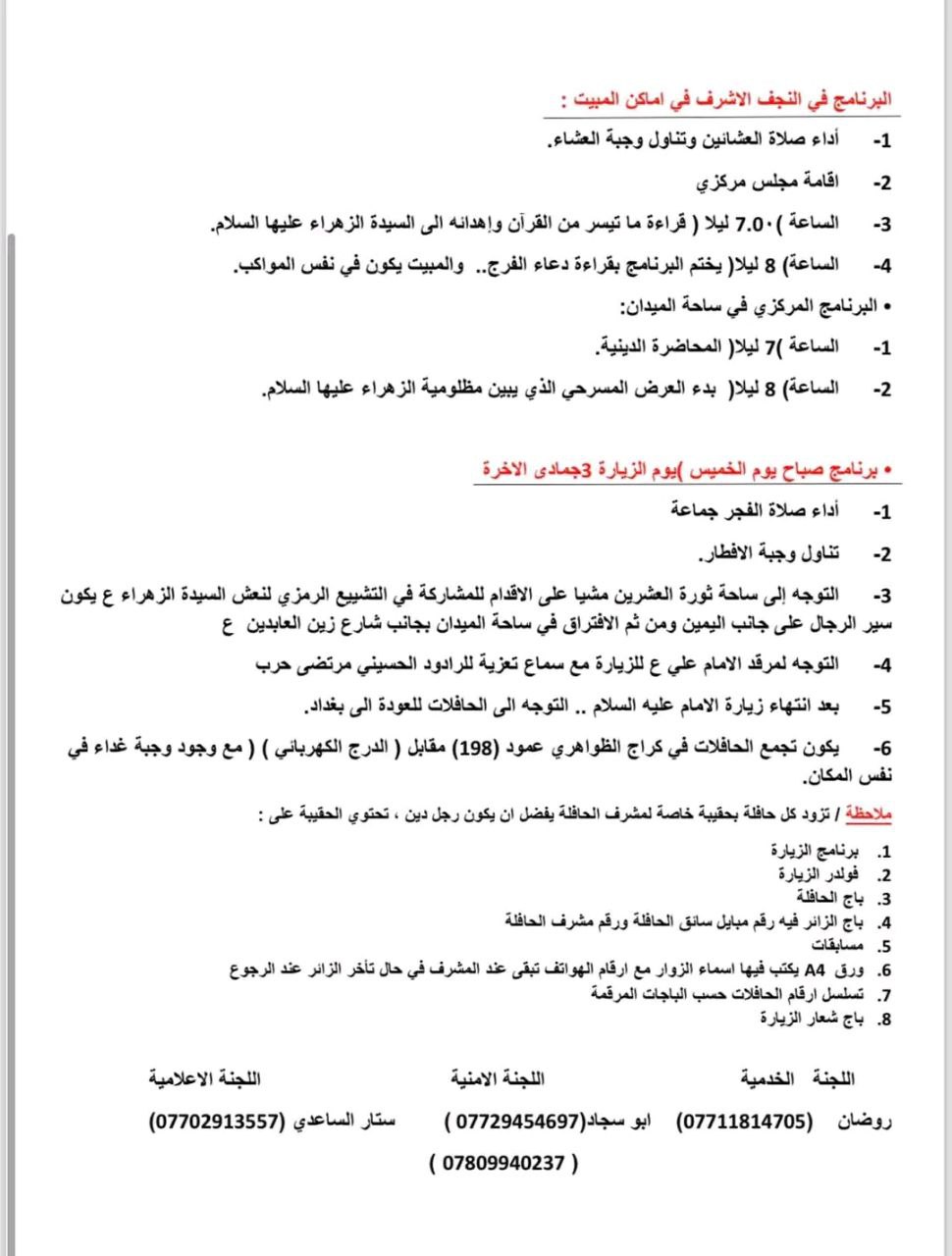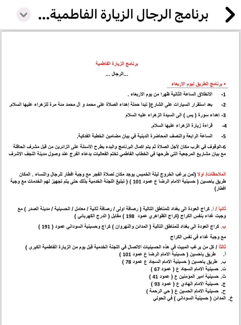 أعلن مسؤول التنظيمية الفاطمية الكبرى في بغداد/الرصافة، الشيخ مجيد العبودي، اليوم الثلاثاء، عن برنامج الزيارة الخاص (للرجال والنساء).