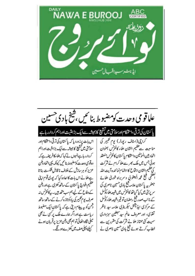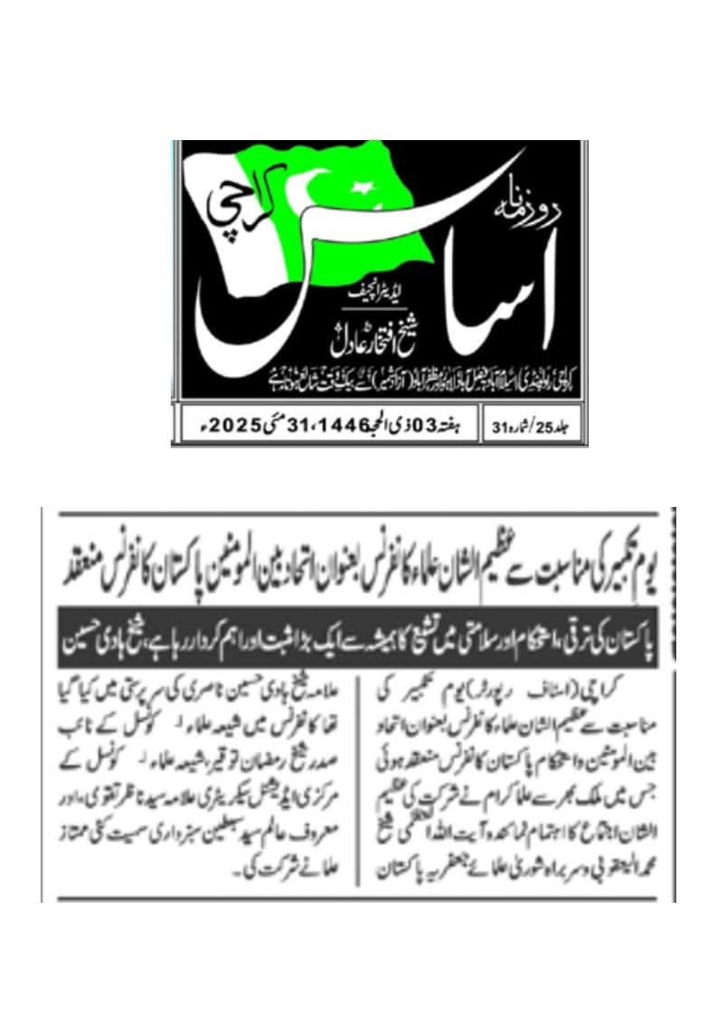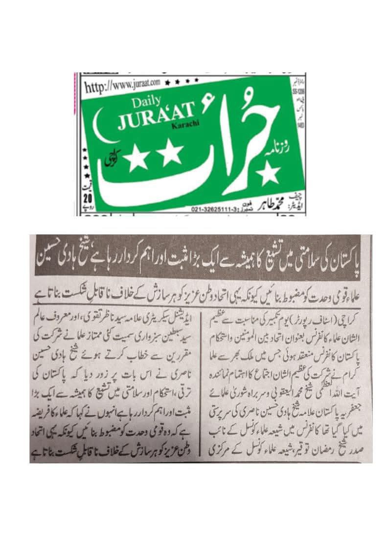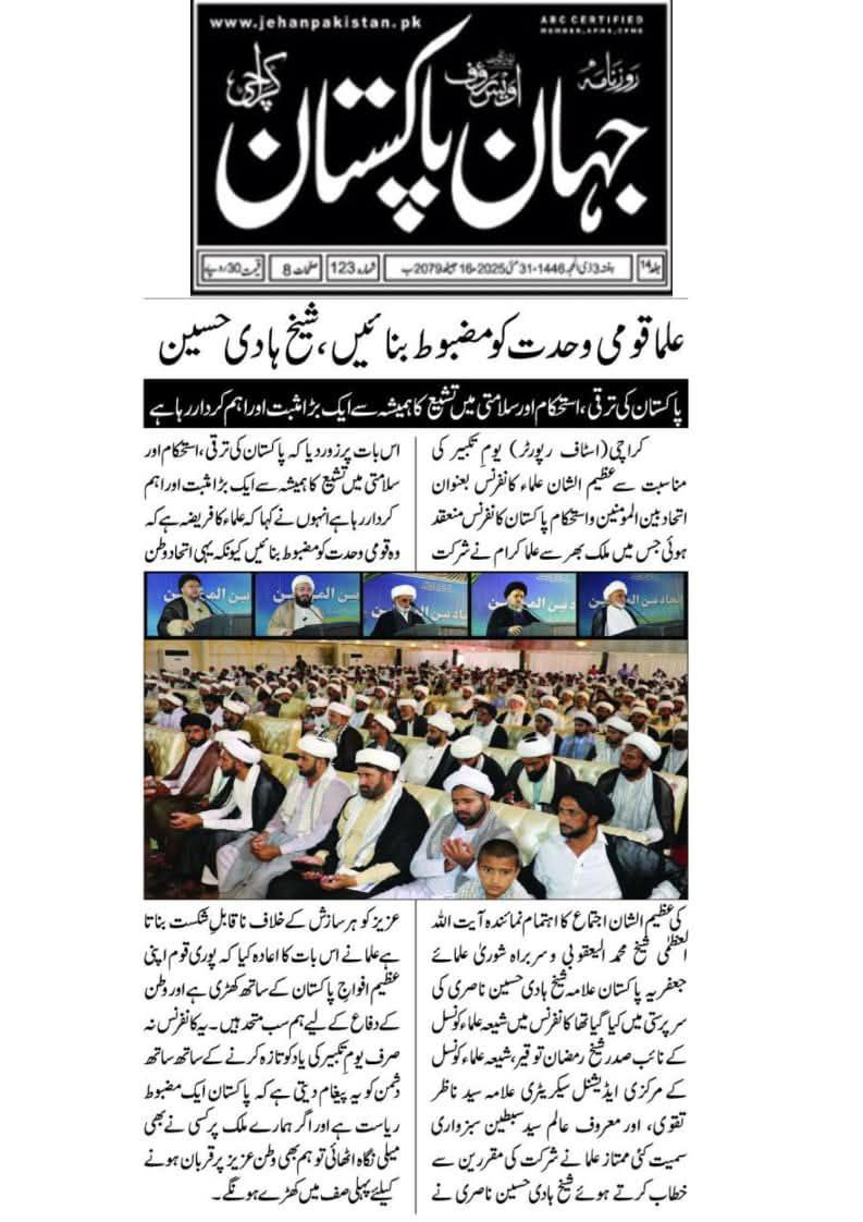 وقد نشرت هذه الصحف، خبر مؤتمر “بهکر” العلمائي الأخير، مبرزةً “أهميته الكبيرة، وما شهده من حضور علمائي وشعبي واسع”، مؤكدةً أن “مكتب المرجع اليعقوبي في باكستان، يلعب دوراً أساسياً في تعزيز اللحمة الوطنية ونشر القيم الإسلامية الأصيلة، بما يسهم في ترسيخ الوحدة والتآزر بين أبناء الوطن”.
