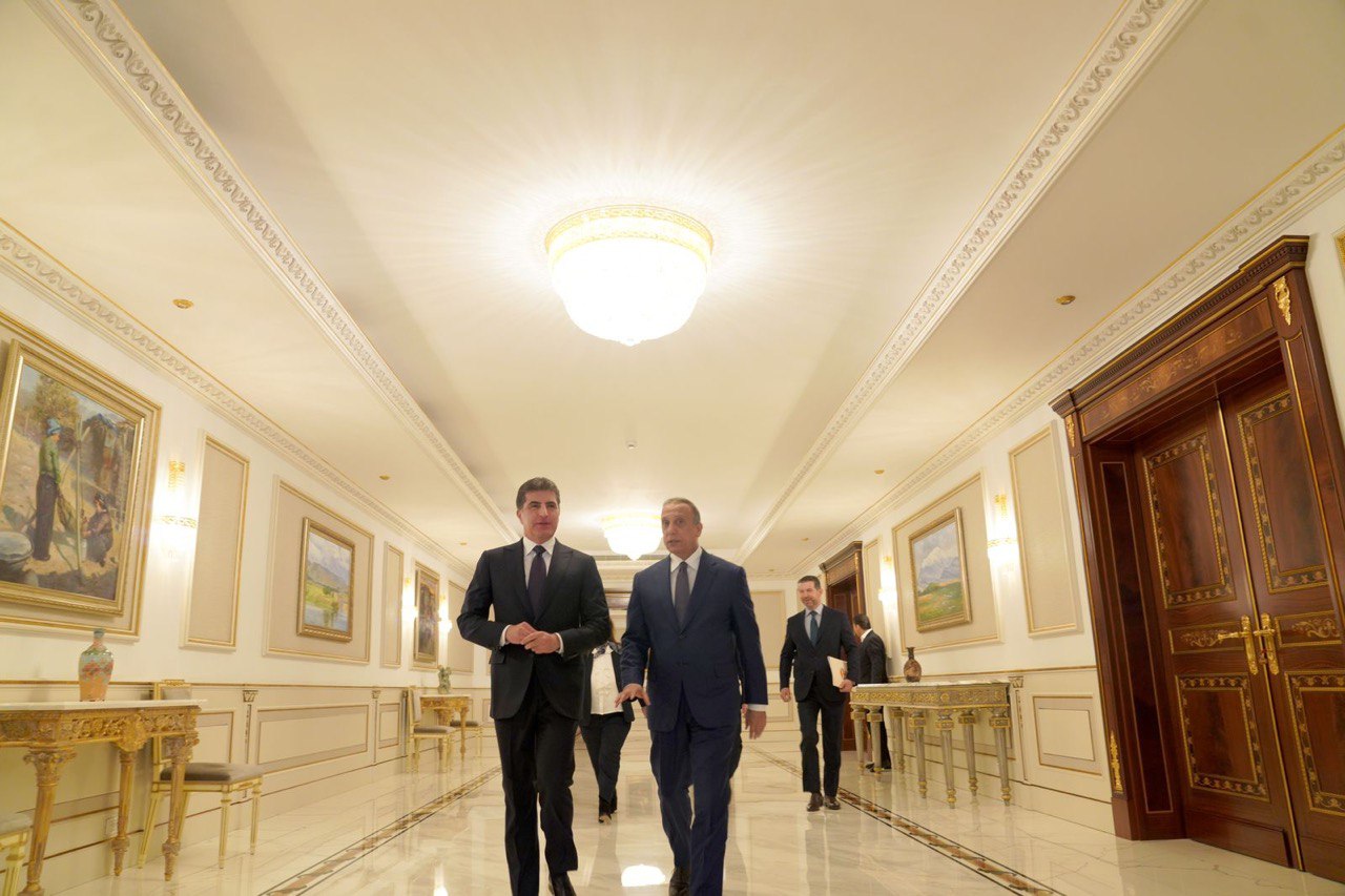 التقى رئيس مجلس الوزراء مصطفى الكاظمي، اليوم الإثنين، رئيس إقليم كردستان ‏العراق ‏نيجيرفان بارزاني‎.‎