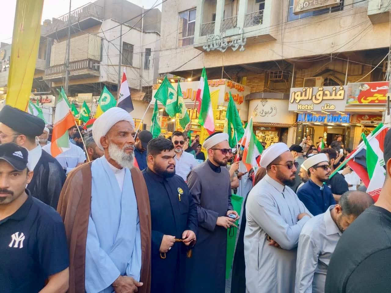 وذكر بيان لمكتب المرجعية، تلقت “النعيم نيوز” نسخة منه، أن “المسيرة انطلقت من جسر الأئمة وصولاً إلى مرقد الإمامين الكاظمين (ع)”، مضيفاً أنها “شهدت مشاركة جماهيرية واسعة، ورفعت شعارات الاستنكار والتنديد بالهجمات الوحشية التي يرتكبها الكيان الصهيوني ضد الأبرياء من الشعب الإيراني”.