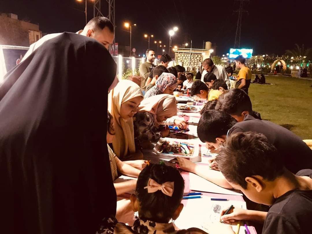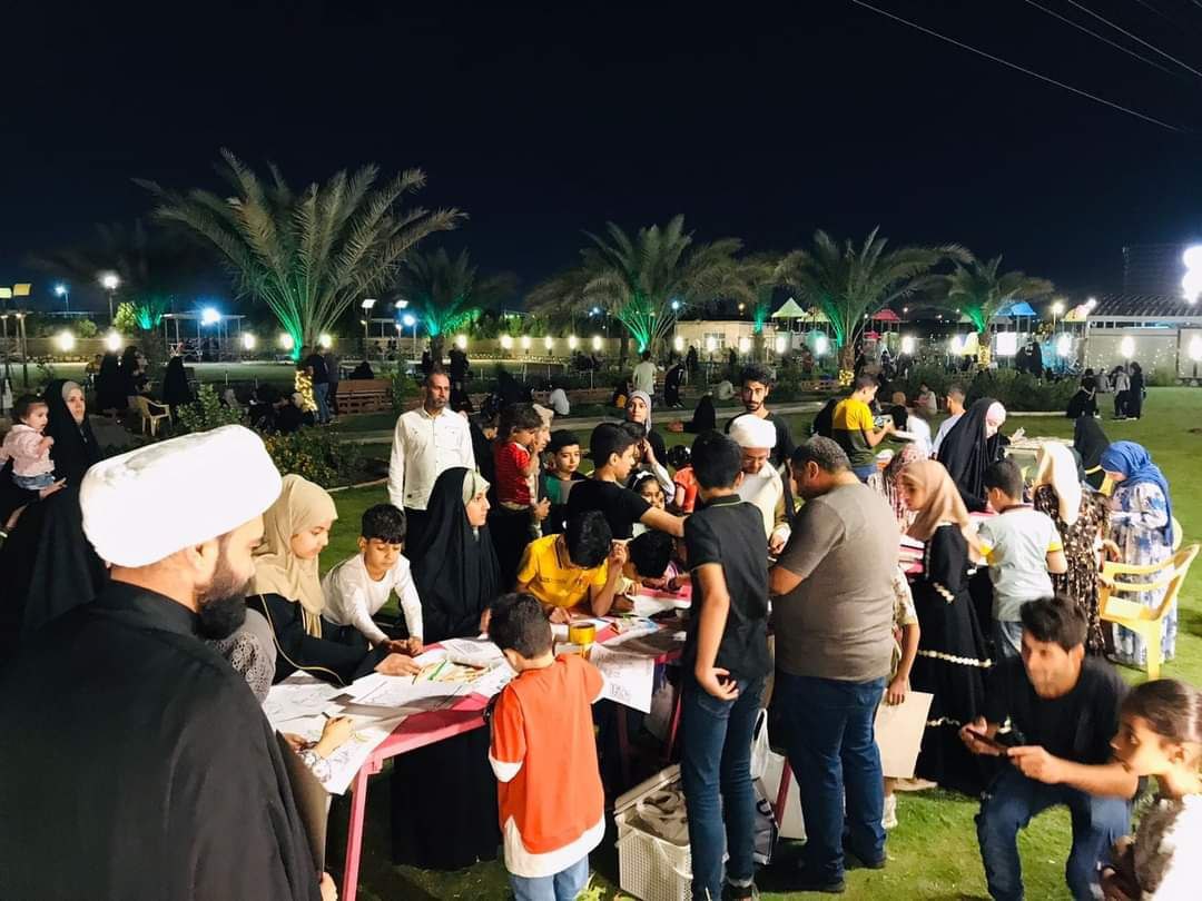 توزيع لوحات فنية ترمز لحياة اهل البيت(عليهم السلام) تلون بأقلام ملونه ويستلم عليها هدية اقرء كتاب لمدة عشر دقائق وخذه هدية عرض كتب منوعة منها مؤلفات المرجع الديني الشيخ محمد اليعقوبي والاسئلة والاجوبة الشرعية والعقائدية.