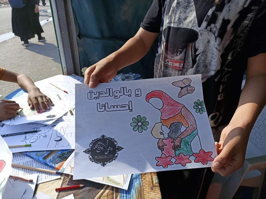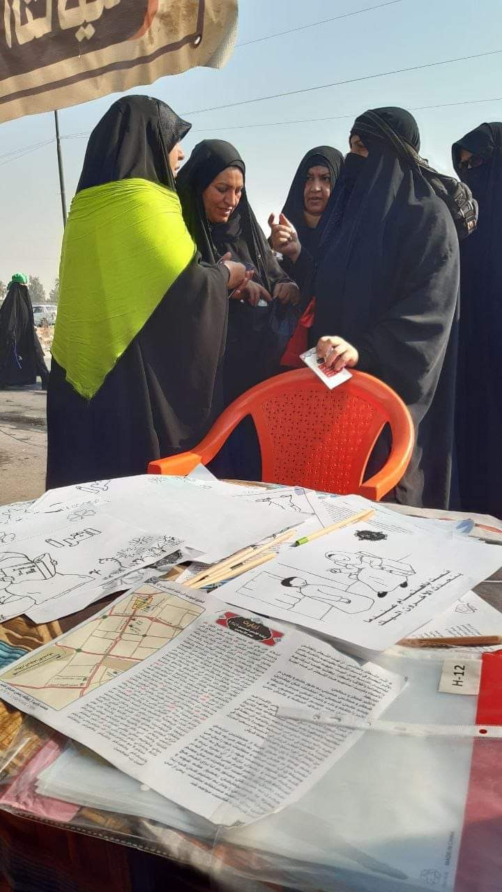 منها تفعيل الرسم عند الأطفال الذين يرافقون الكبار في زيارة الأربعين ومنها تهذيبهم بأخلاق أهل البيت ع  من خلال المنشورات التوعوية التي حرصت إدارة المجمع على وجودها في مواكب الوعي والإصلاح