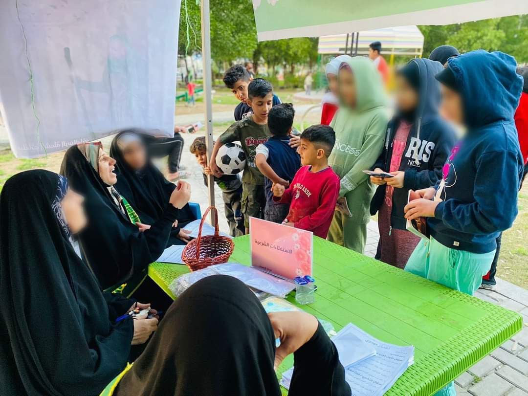 أقام مجمع المبلغات الرساليات في شعلة الصدرين المخيم الثقافي وبالتعاون مع هيأة الإحسان بمناسبة ولادة القمر الزاهر الإمام الحجة بن الحسن المهدي المنتظر(عجل الله فرجه الشريف)في متنزه الشعلة الأولى.
