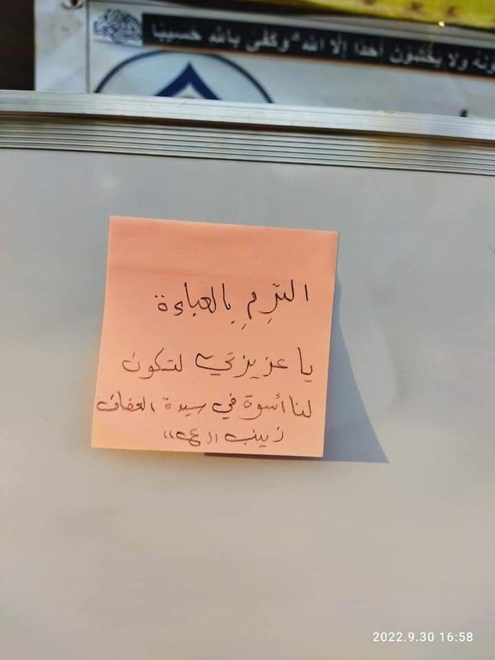 واضاف البيان تعليم الوضوء لعدد من الفتيات وحثهن على اداء الصلاة في وقتها لدخولهن في سن التكليف والإجابة عن الأسئلة الفقهية والعقائدية والإجتماعية والأخلاقية صندوق الحظ يحتوي