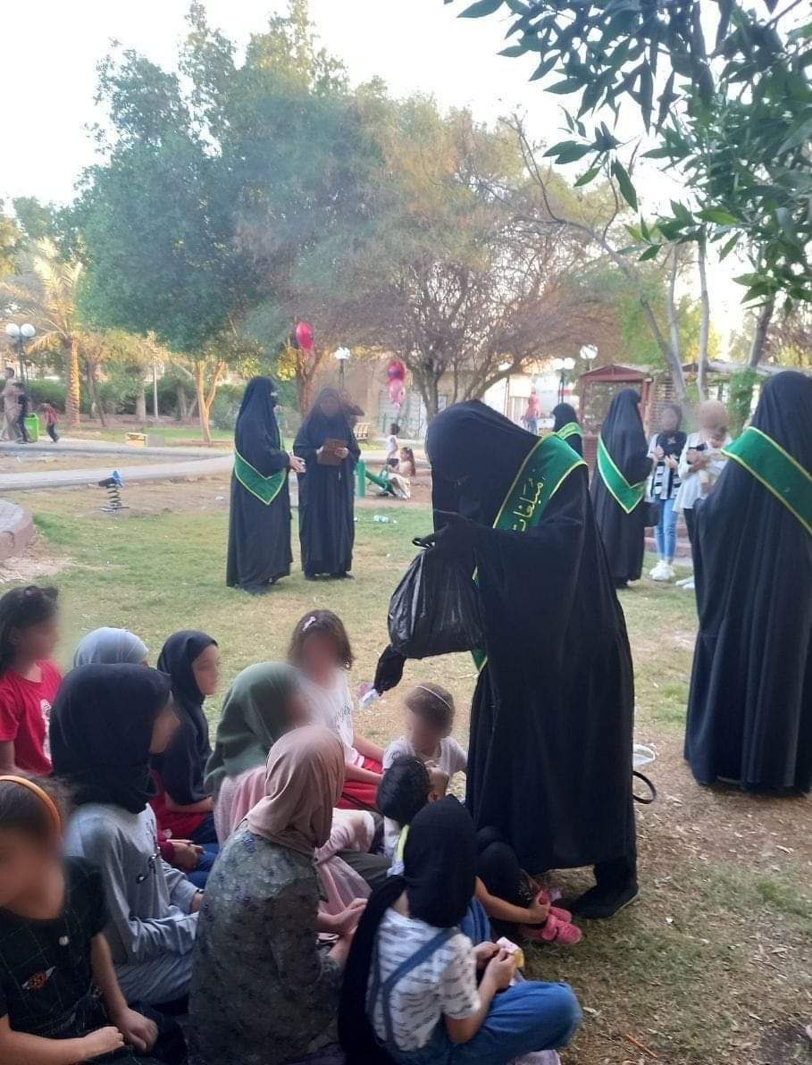 نظم مجمع المبلغات الرساليات في بغداد الشعلة المخيم الثقافي الأسبوعي بمشاركة عدد من المبلغات في أحد المنتزهات.