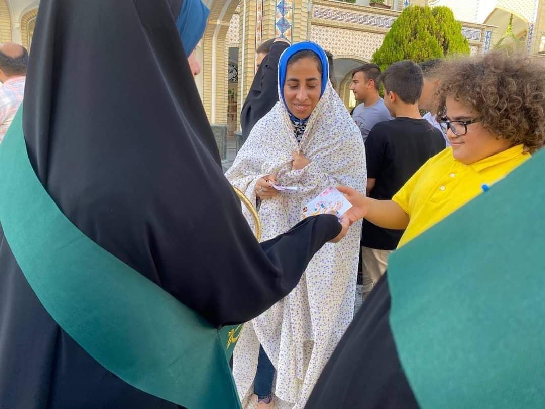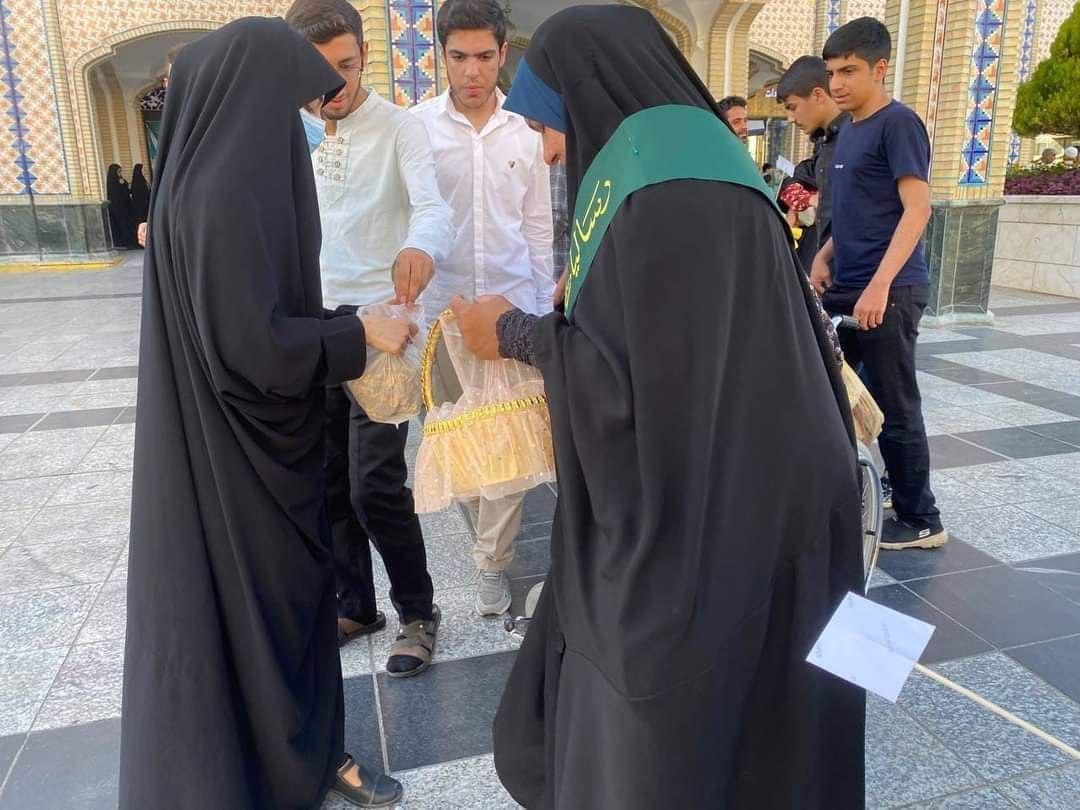 واضاف البيان حيث قامت المبلغات بتوزيع بطاقات التهنئة بالعيد المصحوبة بالحلوى على الزوار وبعض المنشورات تحوي اقوال الامام الرضا والباقر ع  وتوزيع الاشرطة المهدوية على بعض الاطفال وتجمعهم لقراءة انشودة (سلام فرمنده).