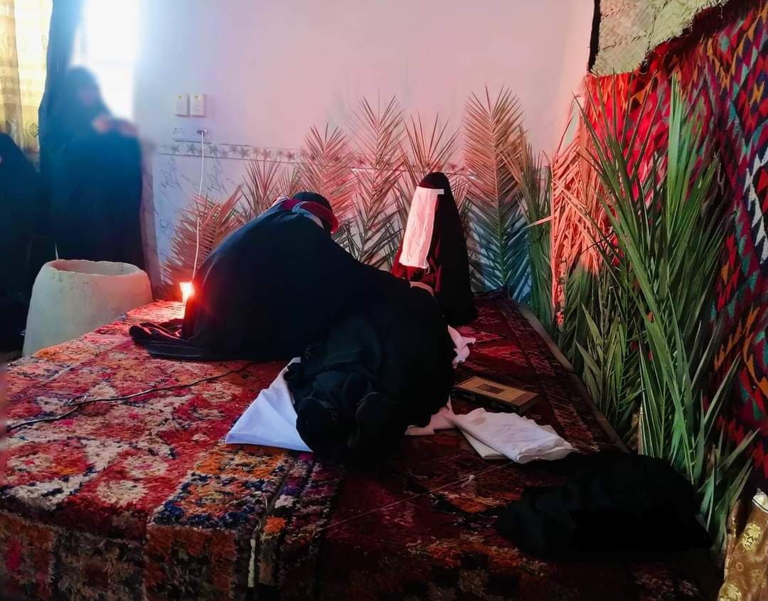 واضاف البيان مشهد تمثيلي لحادثة الهجوم على الدار، الذي يبين جزء من مظلومية ريحانة المصطفى فاطمة الزهراء، وما جرى عليها من ظلم القوم لها بعد رحيل ابيها صلى الله عليه وآله بمشاركة جمع من المبلغات، و الختام بالتشييع الرمزي لنعش فاطمة الزهراء ع.