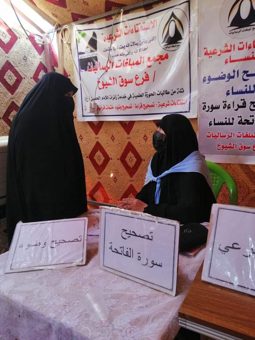 تشرف مجمع المبلغات الرساليات في قضاء سوق الشيوخ جنوبي محافظة ذي قار بالخدمة الميدانية الفعلية في المواكب الحسينية في القضاء والنواحي التابعة له.