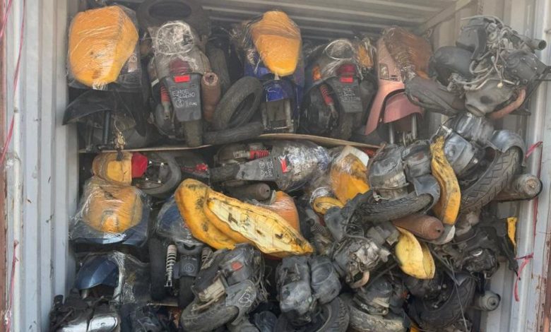 وذكر المتحدث باسم الهيئة علاء الدين القيسي في بيان تلقت “النعيم نيوز” نسخة منه، أنه “بناءً على المعلومات الواردة، من رئيس هيئة المنافذ الحدودية، الفريق عمر عدنان الوائلي، وبعد أستحصال موافقة قاضي محكمة تحقيق ام قصر، تمكنت مديرية منفذ ميناء أم قصر الشمالي، من ضبط خمس حاويات تحتوي (دراجات نارية مختلفة اﻷشكال واﻷحجام) ممنوعة من الاستيراد ومعدة للتهريب”.