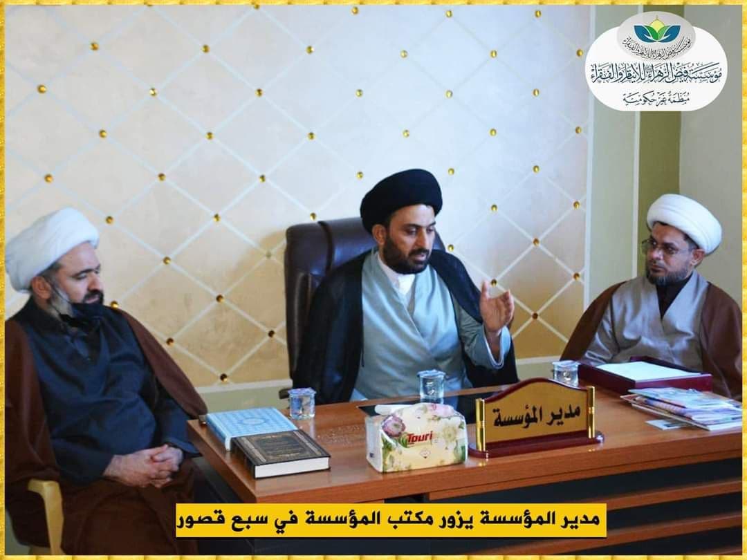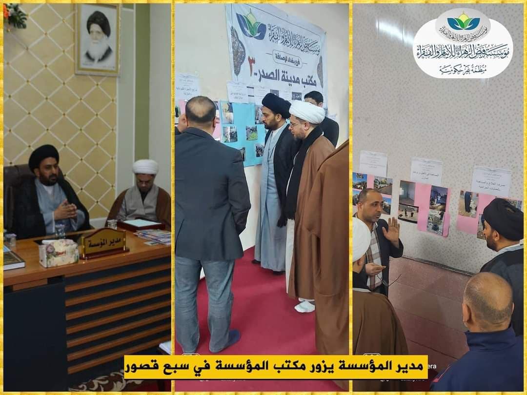 وأضافت، أن “الموسوي وخلال زيارته طرح جملةً من التوجيهات والملاحظات والتي من شأنها إنجاح عمل المؤسسة والسير بها نحو الأفضل. وحثَّ العاملين فيها على بذل المزيد من الجهد للارتقاء بعمل المؤسسة وتقديم أفضل الخدمات”. مشيرة إلى أن “الزيارة شملت مكاتب مدينة الصدر (1) النهروان الحسينية ومكتب سبع قصور”.