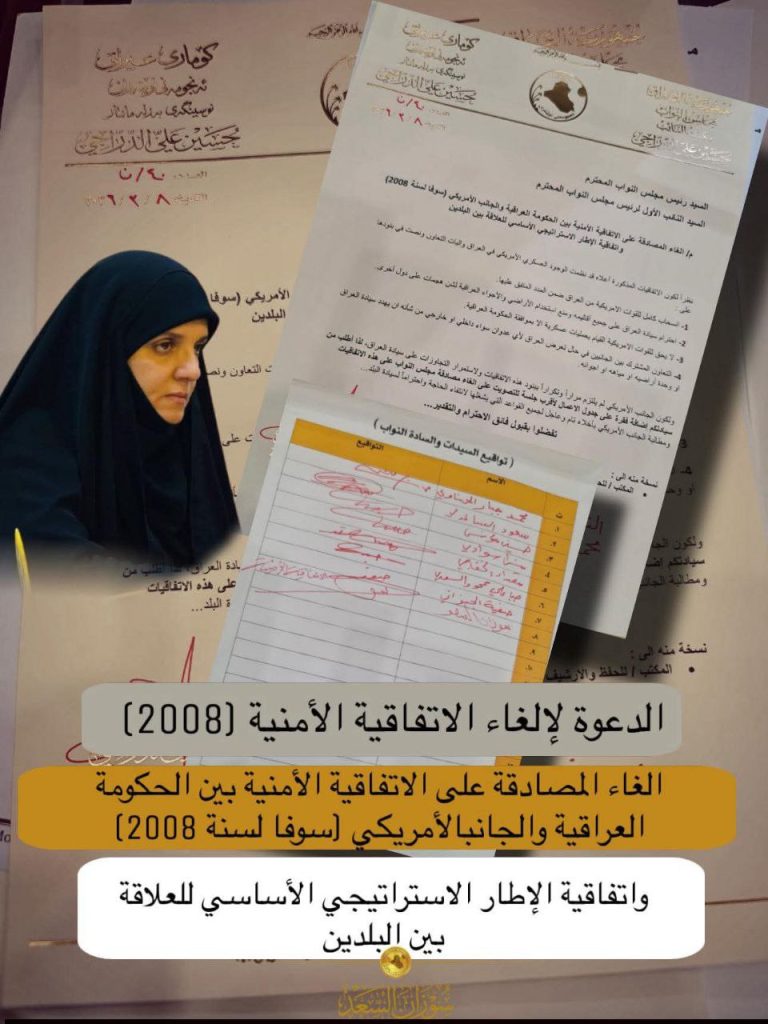 وذكر بيان لمكتب النائب اليوم الخميس، أن “هذا الحراك النيابي يأتي رداً على ما وصف بتكرار التجاوزات على السيادة العراقية وعدم الالتزام ببنود الاتفاقية، مع التأكيد على ضرورة الإخلاء التام والقريب لكافة القواعد العسكرية الأجنبية، استناداً إلى مبادئ السيادة الوطنية الكاملة وحماية أمن واستقرار البلاد”.
