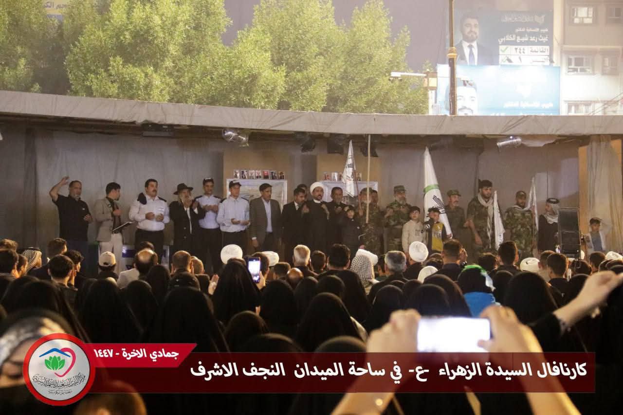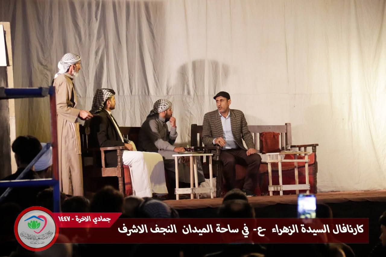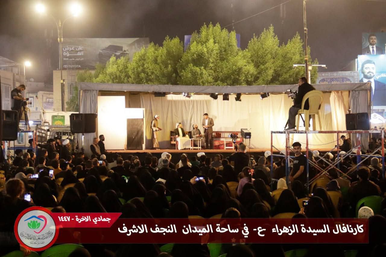 وذكر بيان للهيئة، تلقت “النعيم نيوز” نسخة منه، أن “الهيئة المركزية لتنظيم الزيارة الفاطمية، أقامت كرنفالها السنوي في ذكرى استشهاد الصديقة الطاهرة فاطمة الزهراء (ع)، بحضور خدام الحسين (ع) كل من: قارئ القرآن الشيخ قاسم الجبوري، الخطيب الحسيني الشيخ جاسم البهادلي، خادم الحسين الرادود محمد الكرعاوي، والعرض المسرحي (الوَعَدَ المَحجَوب) تقديم (فرقة صوت الحسين للفنون المسرحية)”.