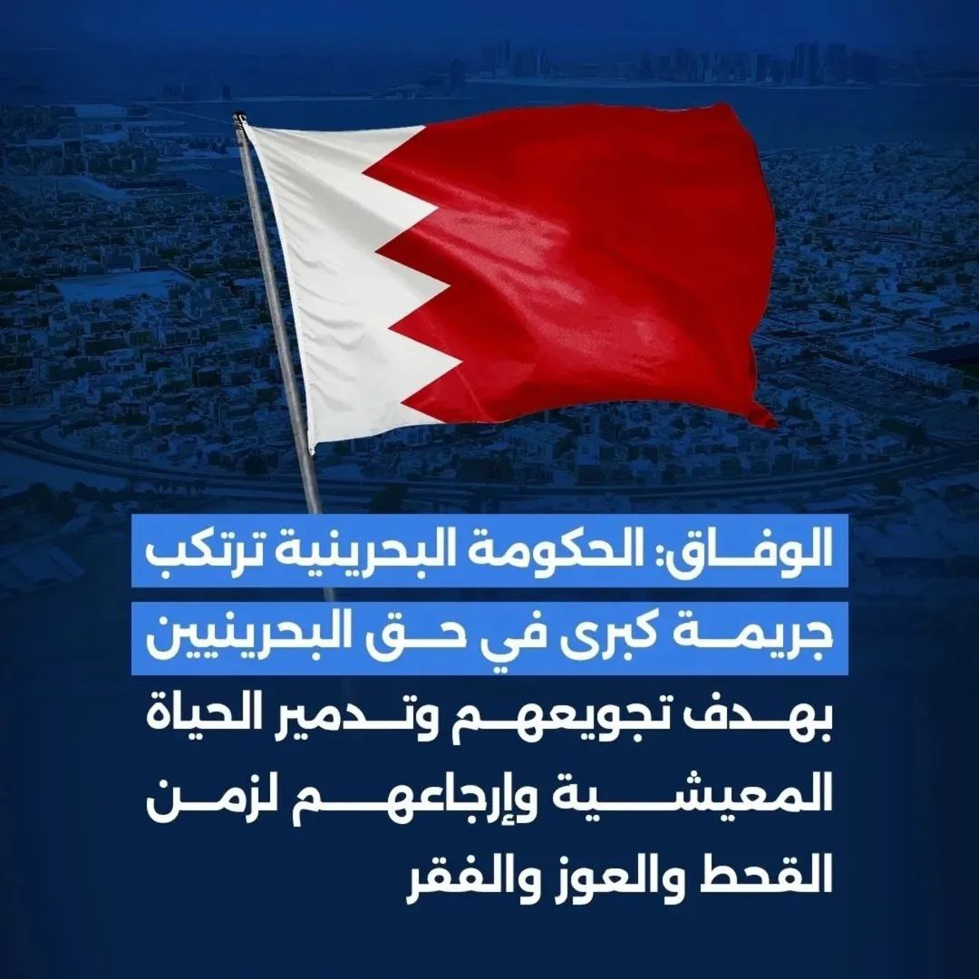 الوفاق المعارضة: حكومة البحرين ترتكب جريمة بحق المواطنين بهدف تجويعهم وإرجاعهم لزمن الفقر
