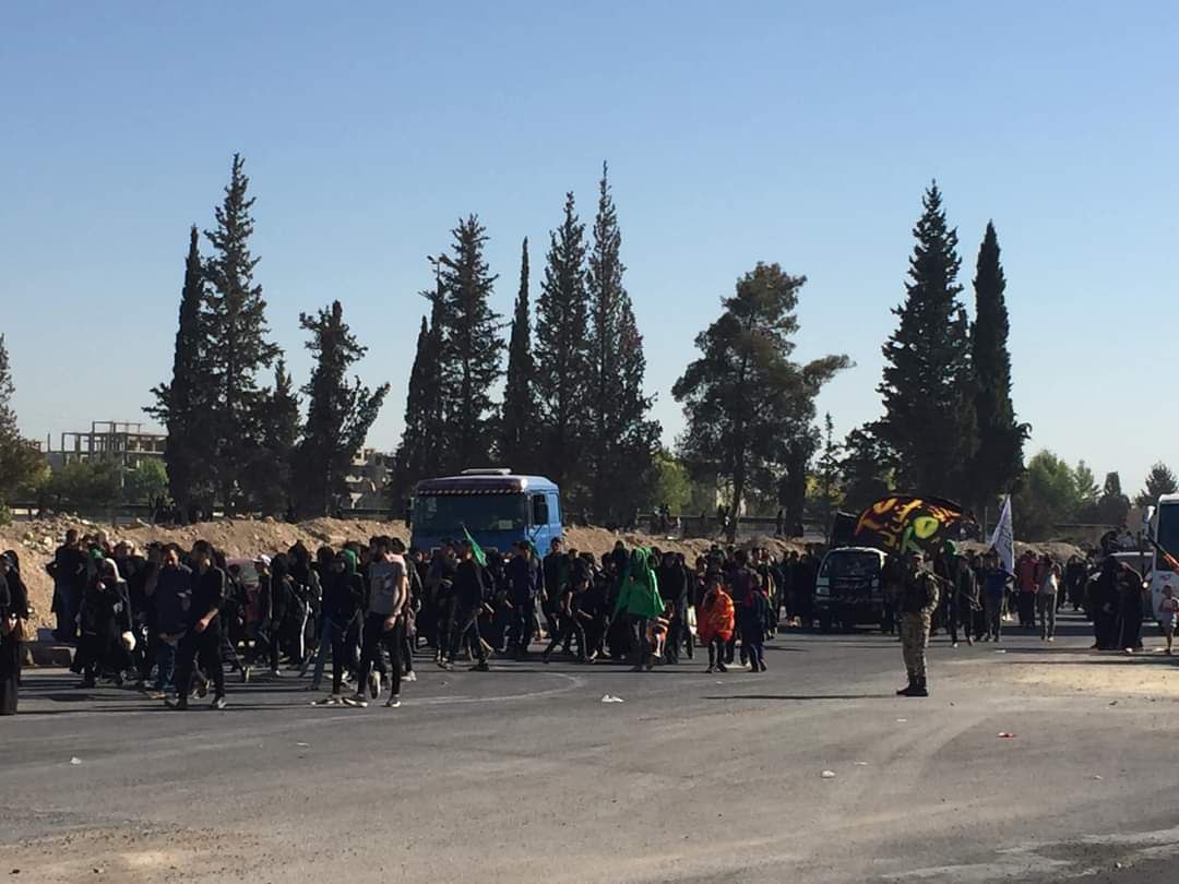 انطلاق الحشود للزوار القادمين مشياً على الأقدام من مقام السيدة رقية (ع) في دمشق الى مقام السيدة زينب (ع)