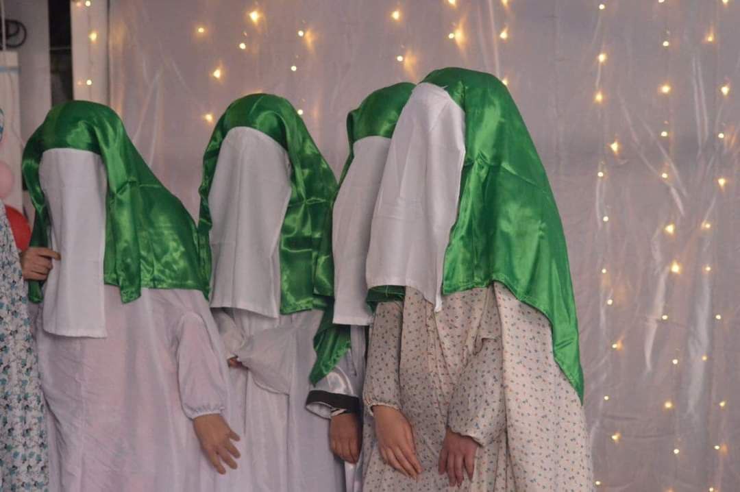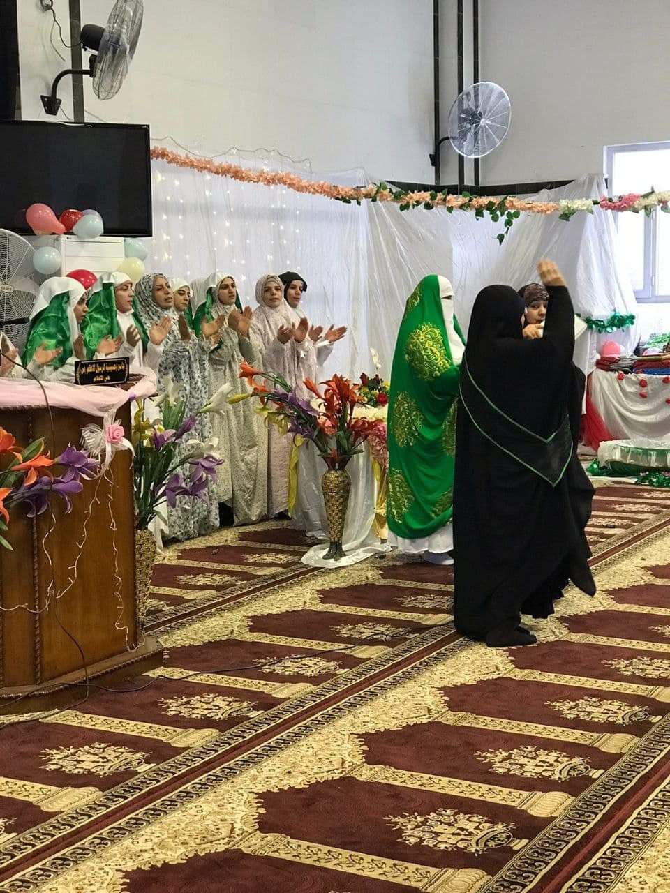 الاستاذة امل المياحي تمثيل مشهد ولادة الزهراء (ع ) قامت به مجموعة من طالبات جامعة الزهراء (ع) ومشهد الولادة خادمة الحسين (ع ) : اخلاص برهان وقصة جُسدت بالتمثيل بين الهداية والضلال نفذتها طالبات الجامعة.