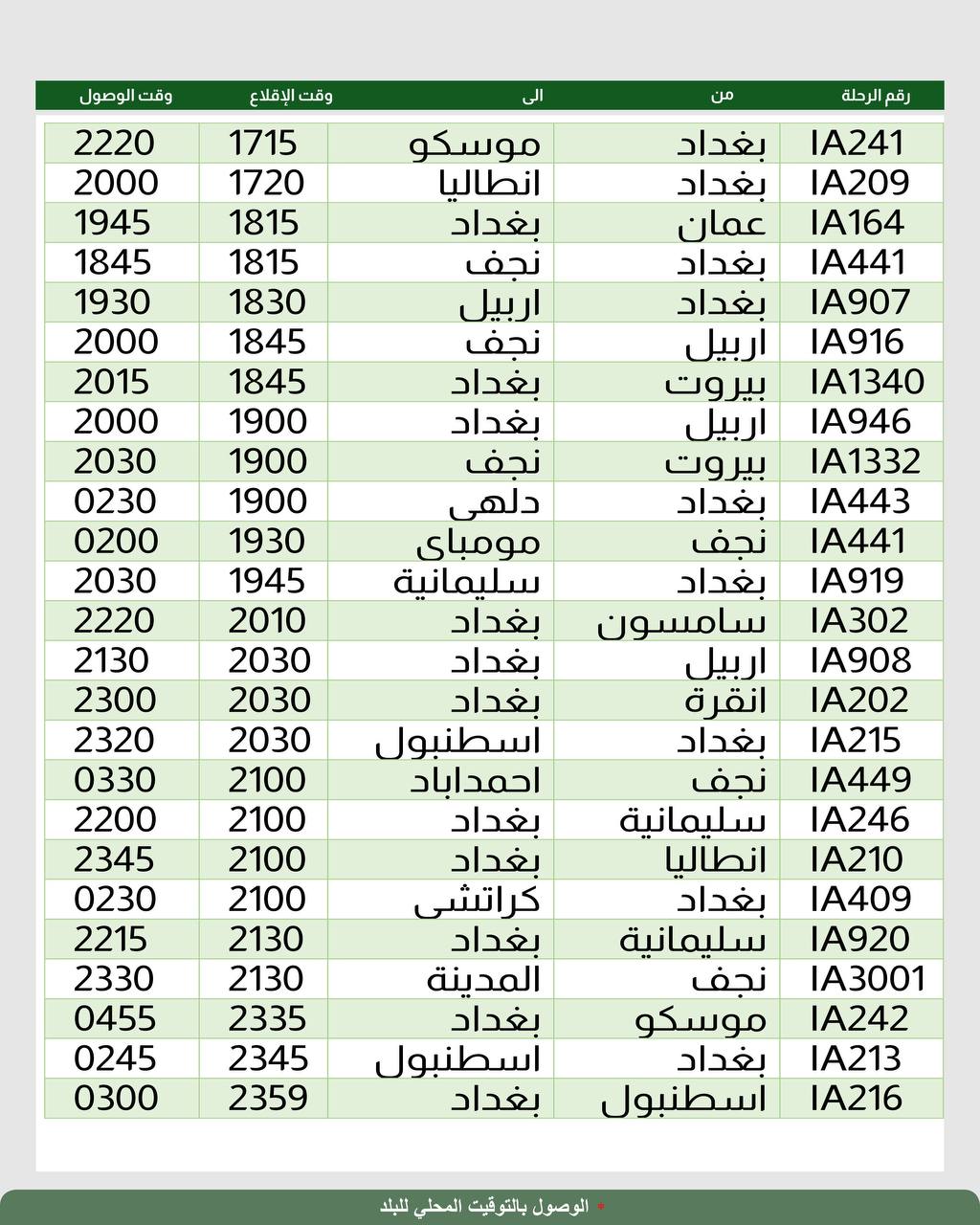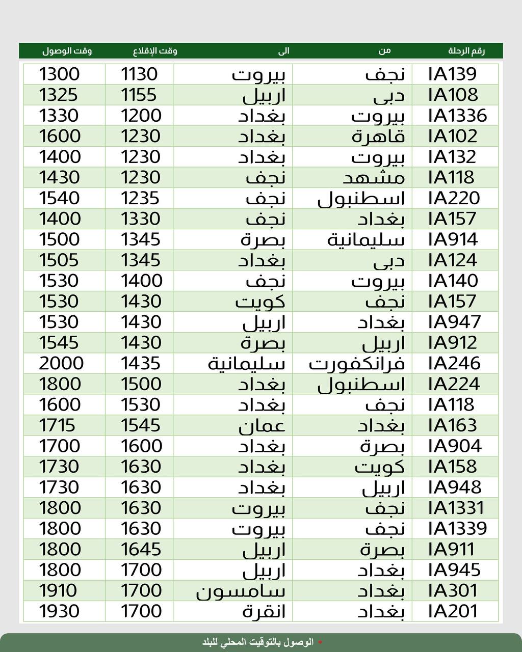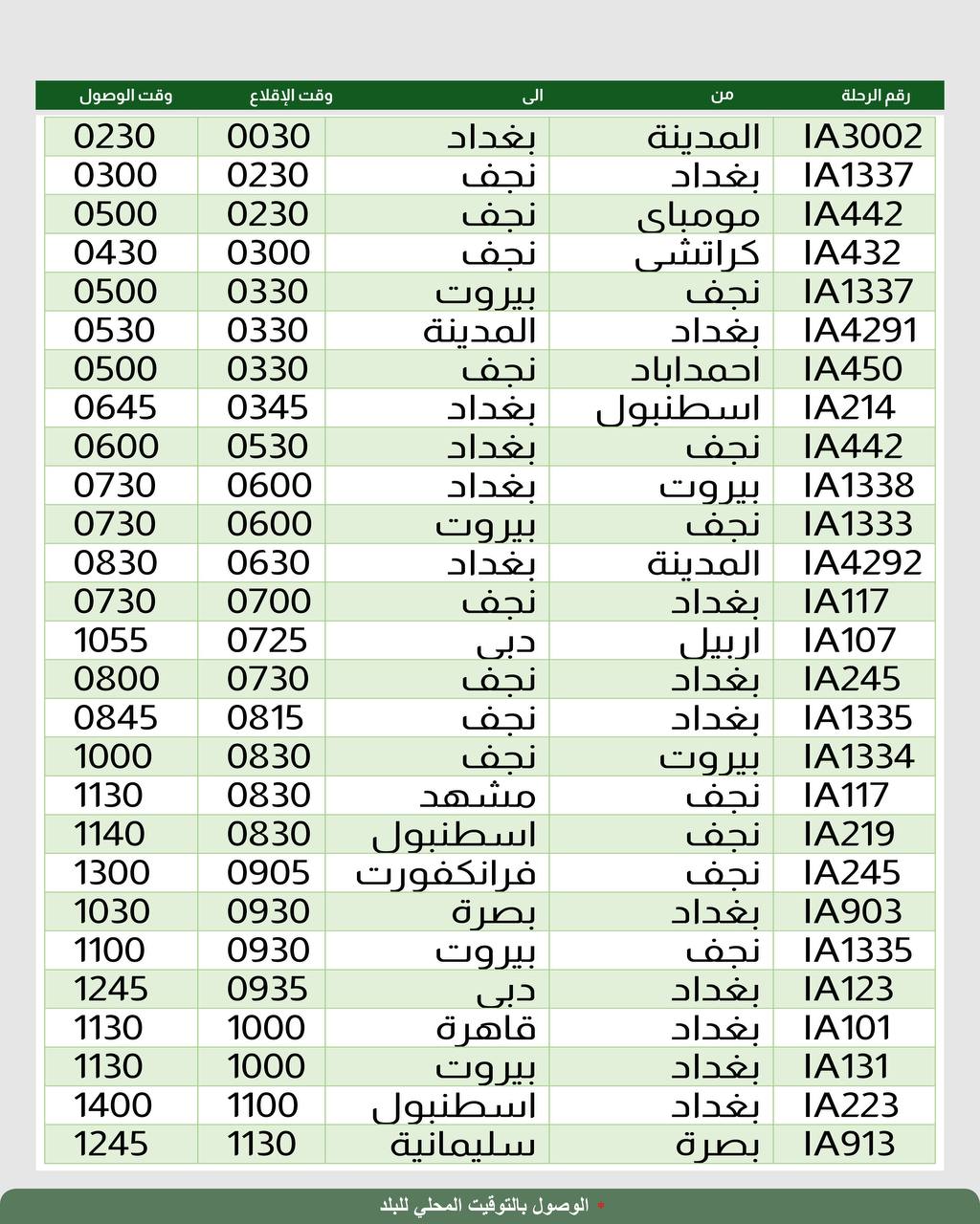 أعلنت شركة الخطوط الجوية العراقية، اليوم الأربعاء، جدول رحلاتها الداخلية والخارجية ليوم غد الخميس.