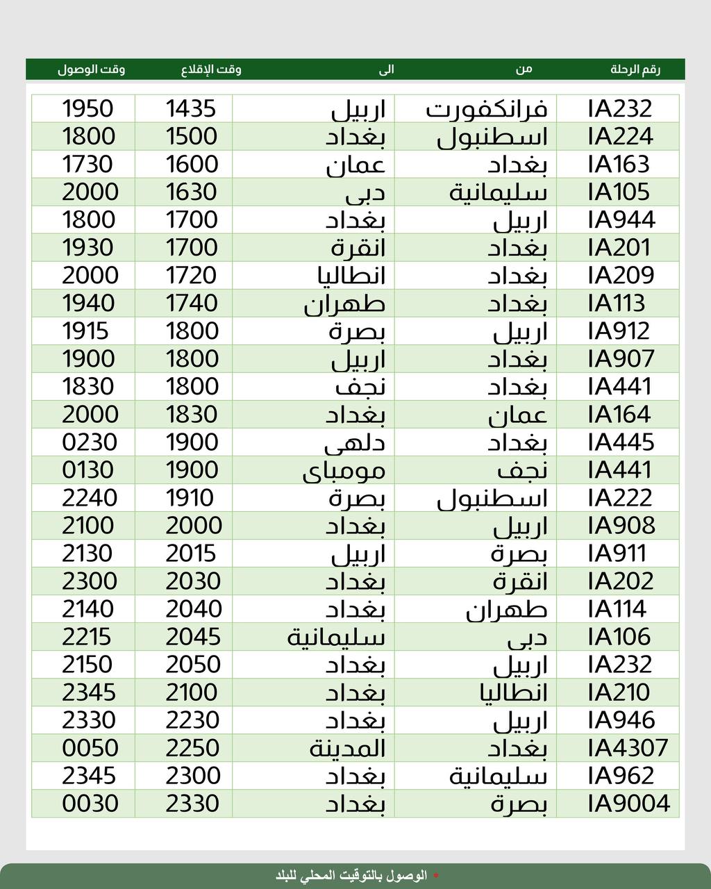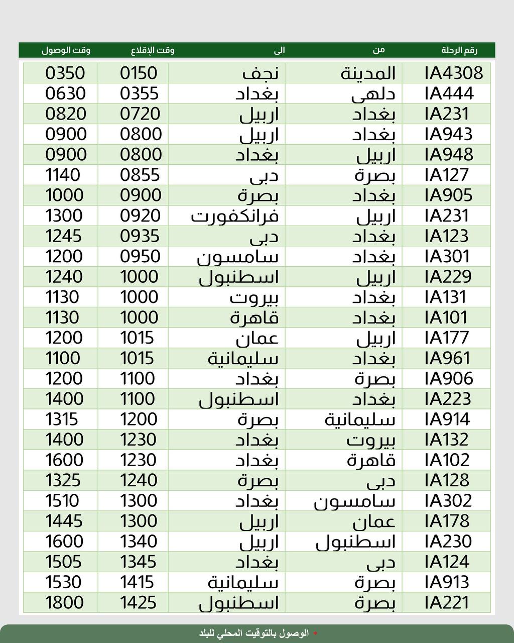 أعلنت الخطوط الجوية العراقية، اليوم الأحد، عن جدول رحلاتها ليوم غد الاثنين.