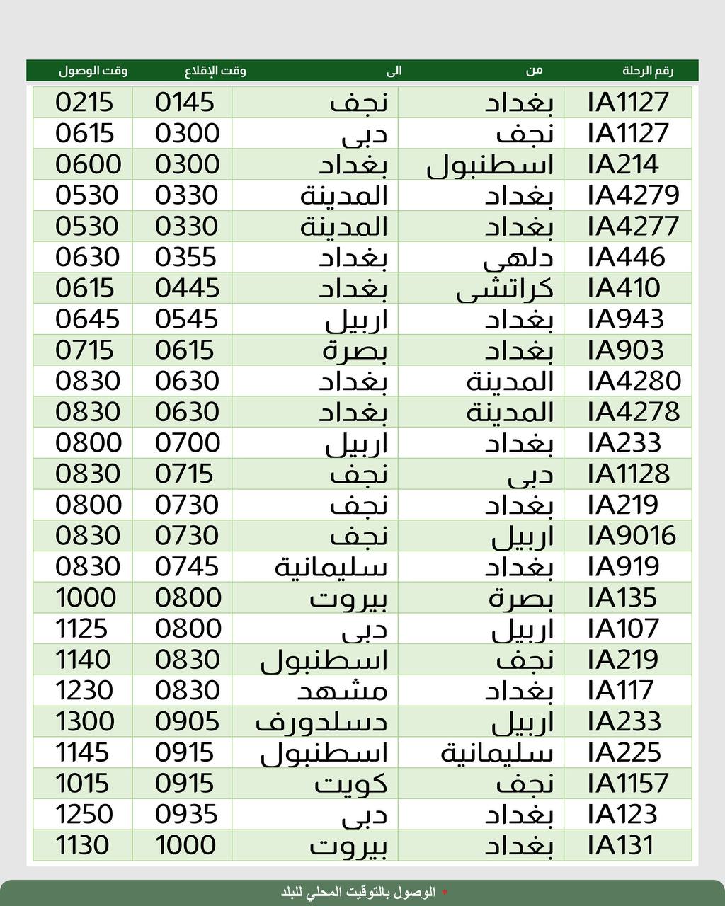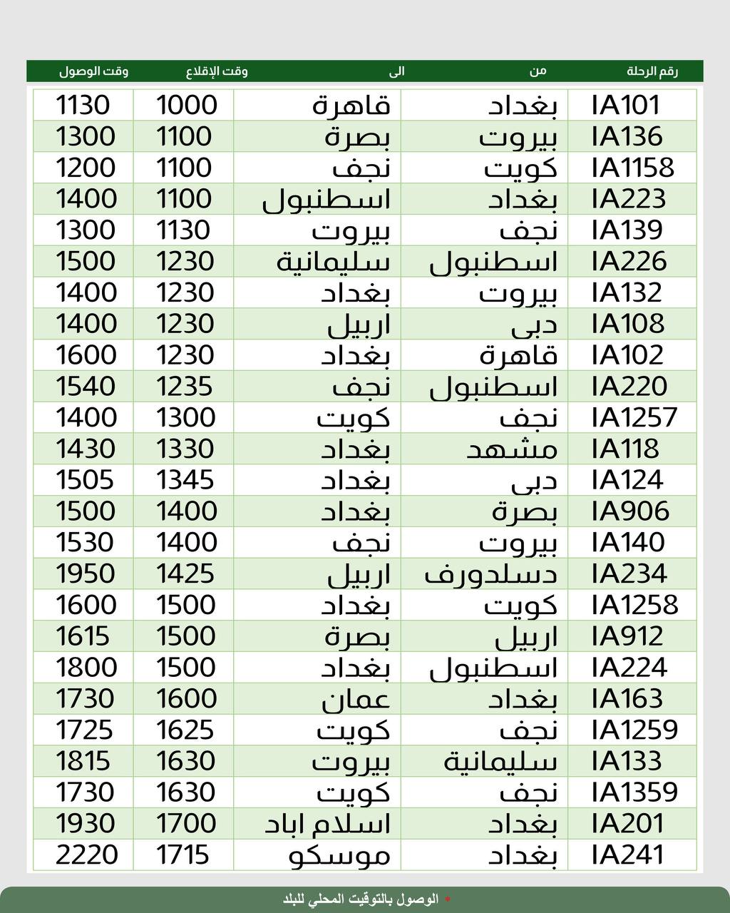 أعلنت شركة الخطوط الجوية العراقية، اليوم الاثنين، عن جدول رحلاتها الداخلية والخارجية ليوم غدٍ الثلاثاء.