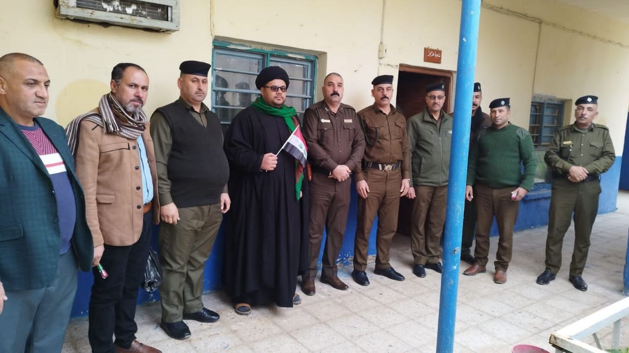 وتابع السيد الموسوي، “كما وشحت صدور أبناء الشرطة وقادتهم بالعلم العراقي. تثميناً لجهودهم وإخلاصهم لأرضهم، داعين الله عز وجل أن يمدهم بالنصر. وهم يسعون لتحقيق الأمن والأمان لعراقنا الحبيب”.