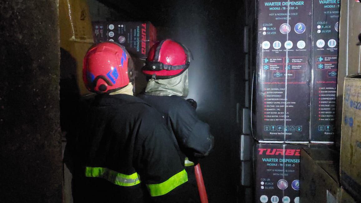 وأوضح، أنه “تم زج أكثر من 15 سيارة إطفاء تخصصية وأخرى ساندة بكامل طواقمها. مع زج عجلة السلم لتكافح النيران من الأعلى إلى الأسفل. لتمنع امتداد الحريق إلى المخازن المجاورة لموقع المخزن المحترق” .
