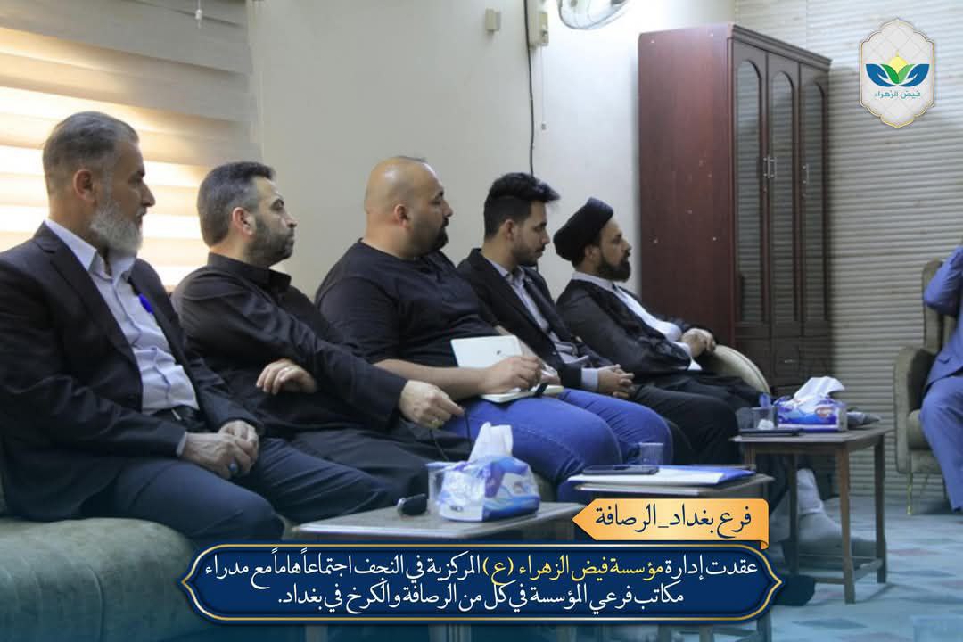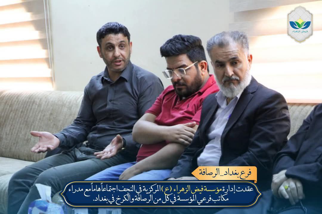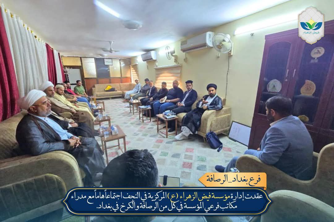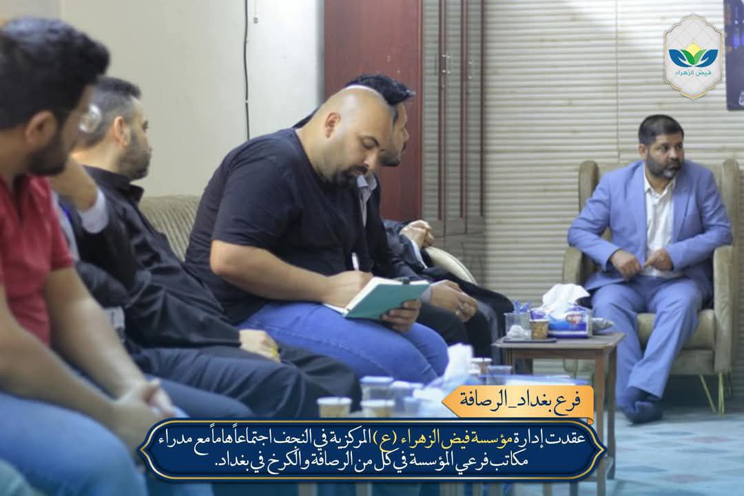 عقدت إدارة مؤسسة فيض الزهراء (ع) المركزية في النجف، اليوم الخميس، اجتماعاً هاماً مع مدراء مكاتب فرعي الرصافة والكرخ في بغداد.