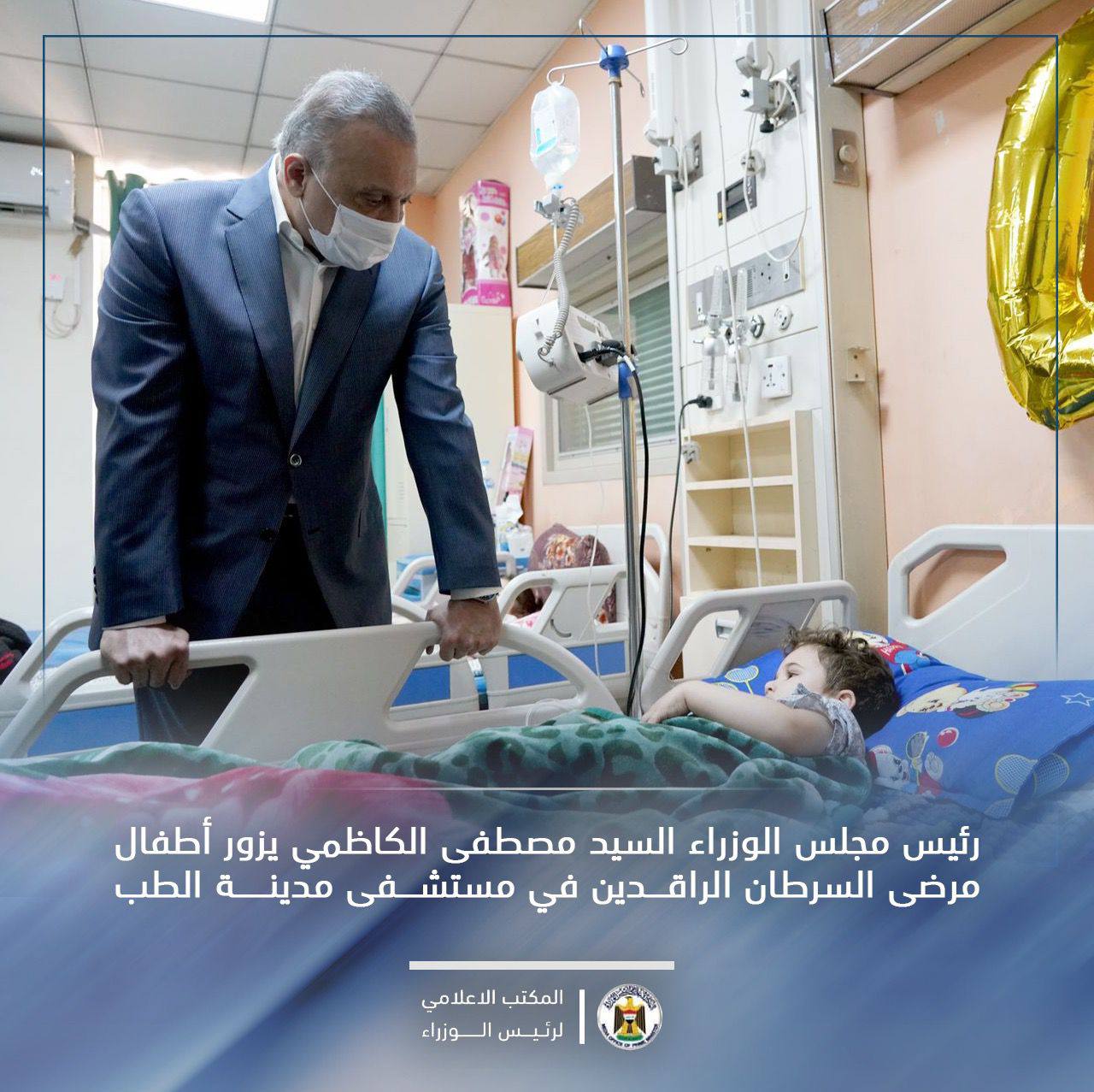 أجرى رئيس مجلس الوزراء مصطفى الكاظمي، صباح اليوم الإثنين، زيارة تفقدية إلى مستشفى مدينة الطب، زار خلالها ردهات الأطفال من مرضى السرطان الراقدين في المستشفى.