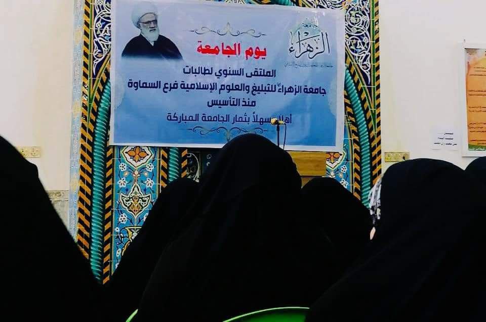 أعلنت جامعة الزهراء (ع) للتبليغ والعلوم الإسلامية فرع السماوة، اليوم الاثنين، عن إقامة الملتقى السنوي بمناسبة يوم الجامعة.