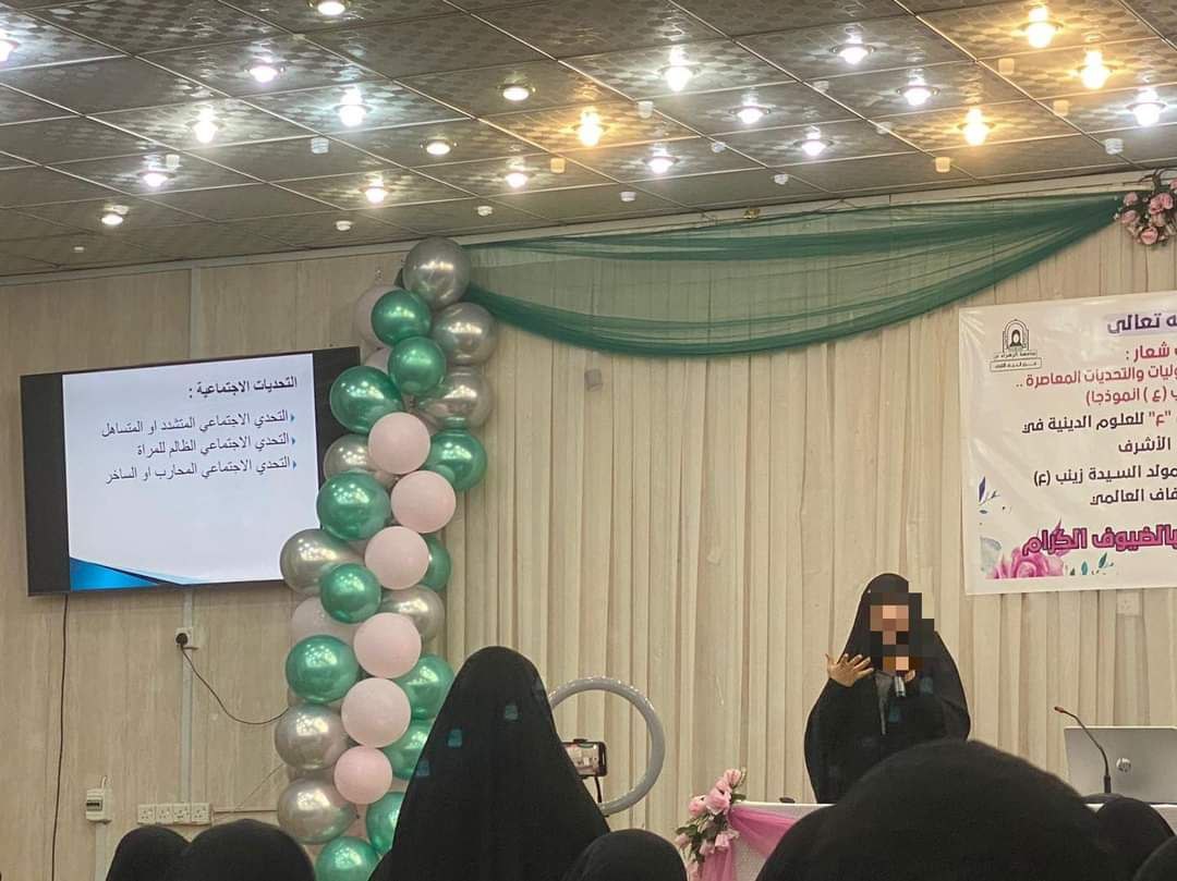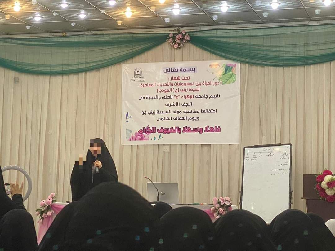 وأوضح بيان للجامعة، تلقت “النعيم نيوز” نسخة منه، أنه “تحت شعار (دور المرأة بين المسؤوليات والتحديات المعاصرة .. السيدة زينب (ع ) أنموذجاً)، أقامت جامعة الزهراء (ع) للعلوم الدينية في النجف الأشرف، احتفالها بمناسبة مولد السيدة زينب (ع) ويوم العفاف العالمي، في قاعة الزهراء (ع)”.