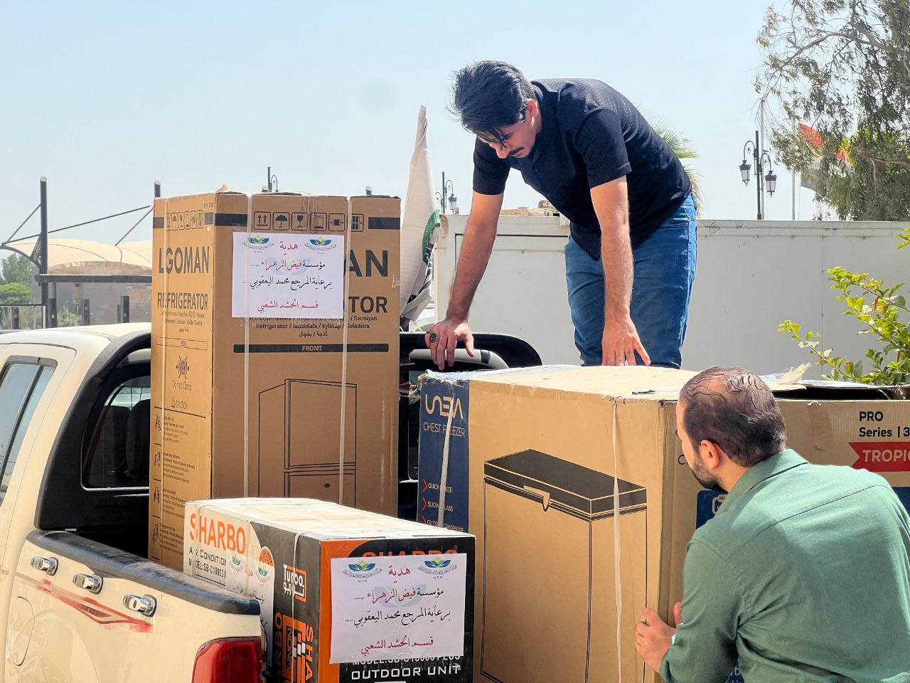 بالصور.. فيض الزهراء (ع) توزّع أجهزة كهربائية على عوائل الحشد الشعبي في النجف