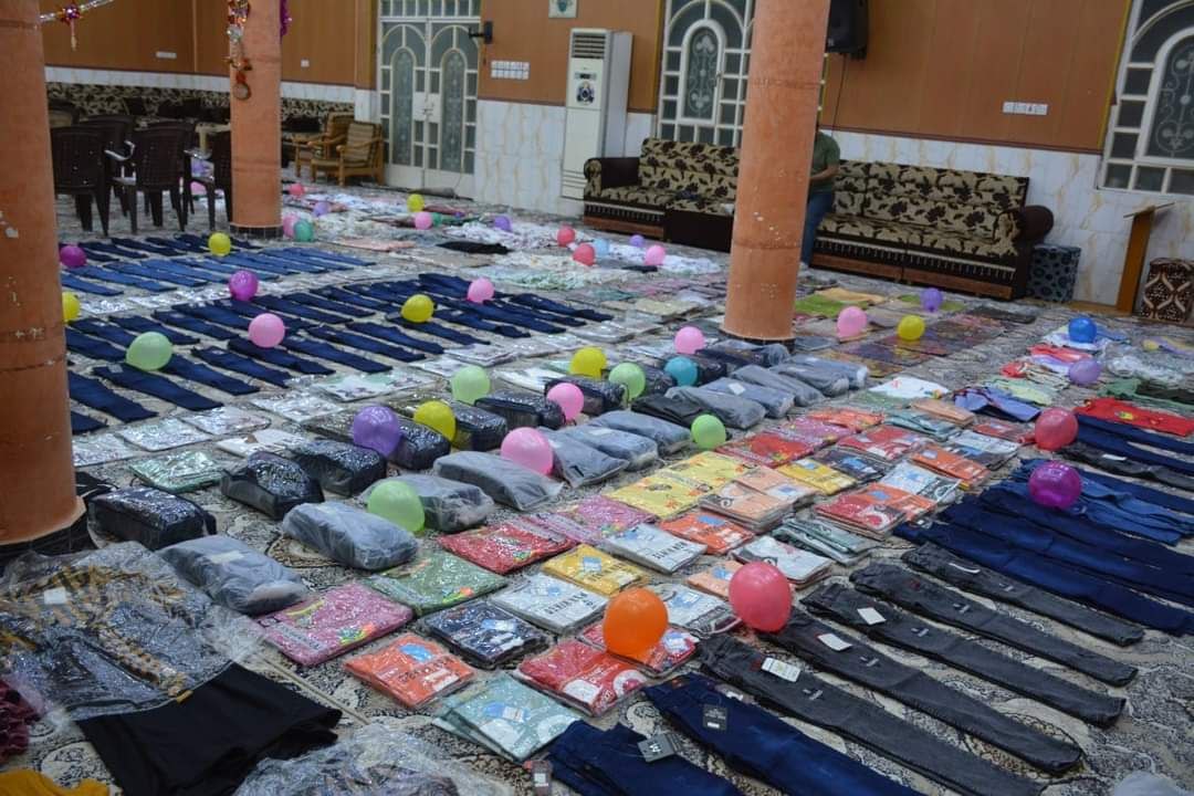 بالصور.. فيض الزهراء (ع) في البصرة تجهز مئات الفقراء والأيتام بملابس العيد