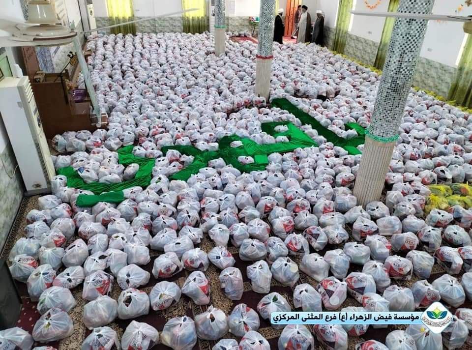 بالصور.. فيض الزهراء (ع) في المثنى توزّع 2300 سلة غذائية دعماً للعوائل المتعففة