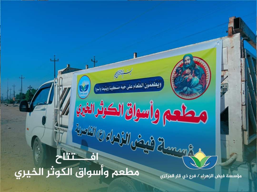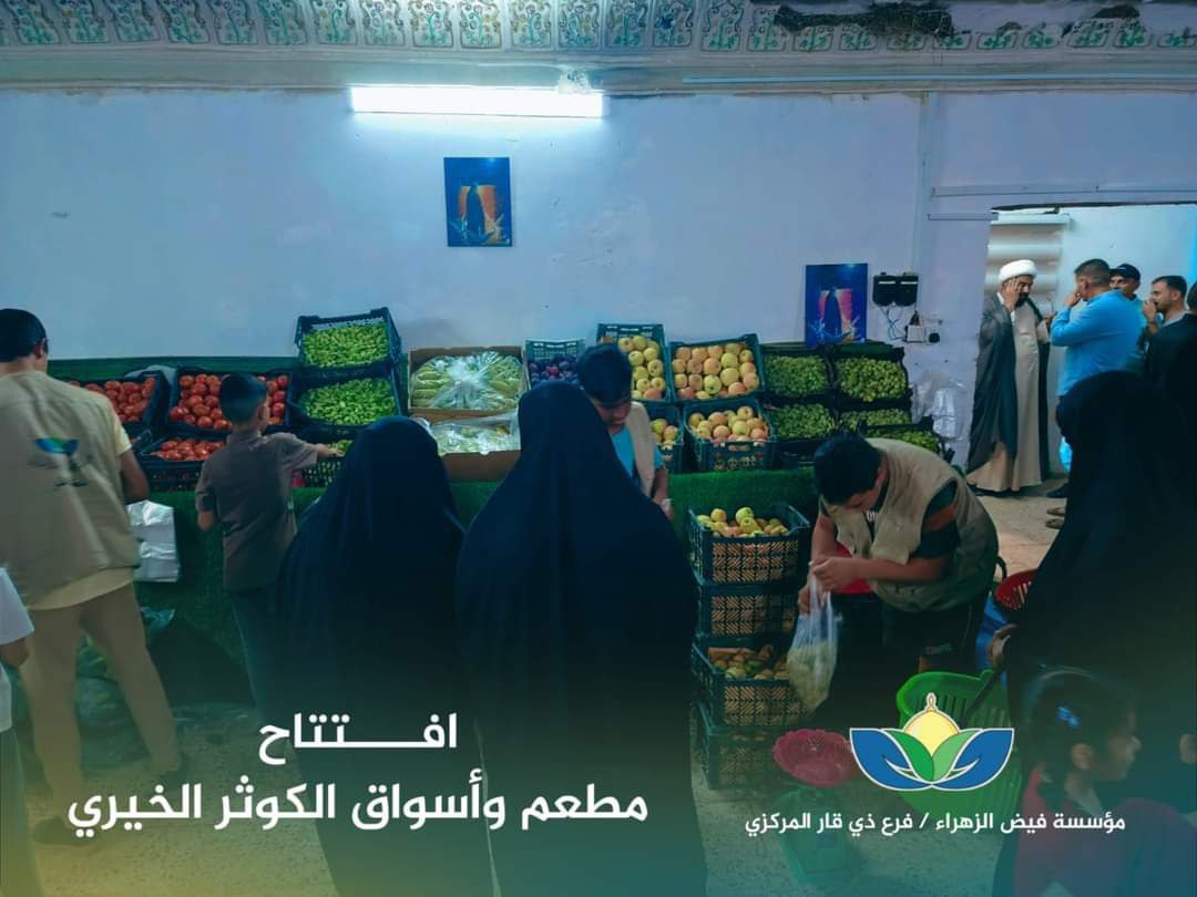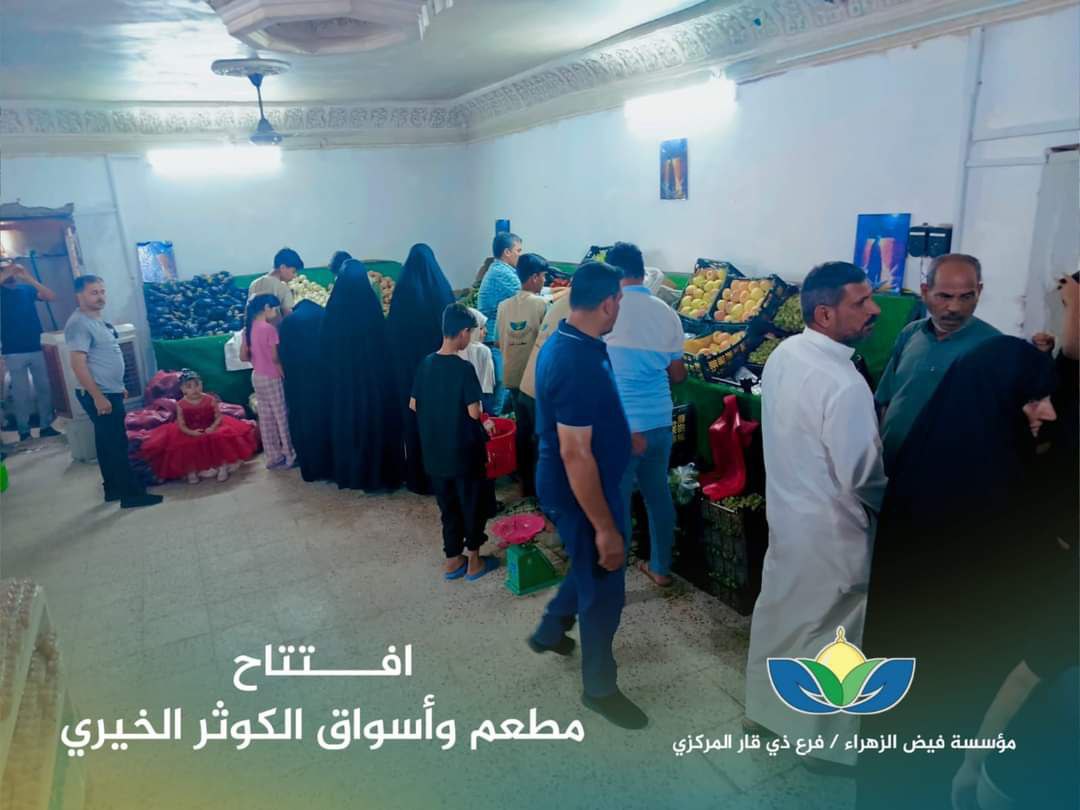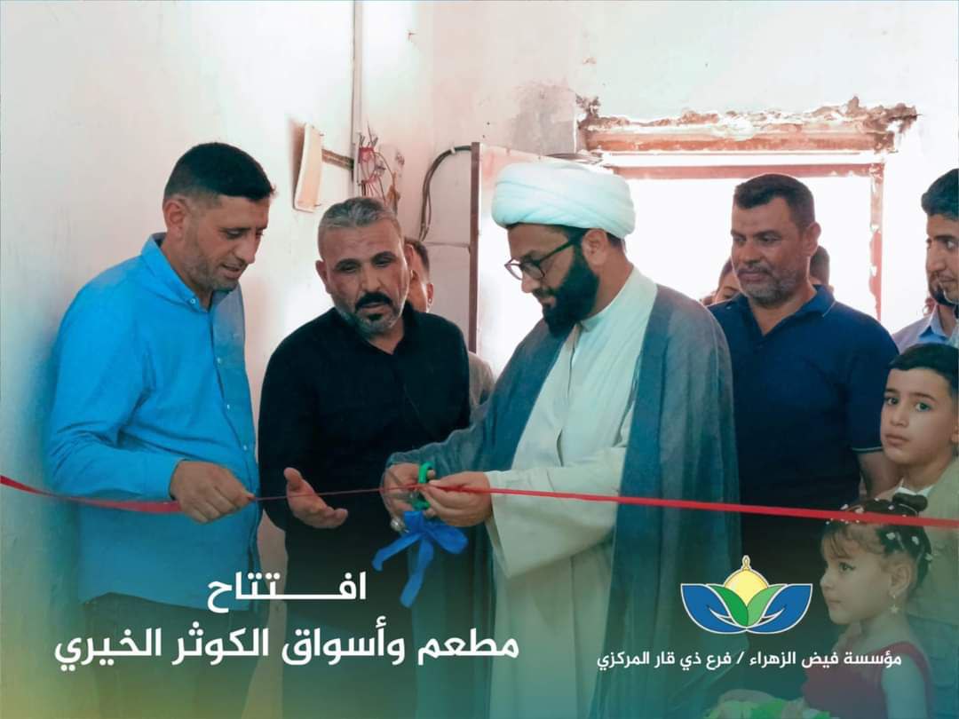 افتتحت مؤسسة فيض الزهراء (ع) في محافظة ذي قار، يوم أمس السبت، مطعم وأسواق الكوثر الخيري، لرعاية العوائل المتعففة والأيتام.