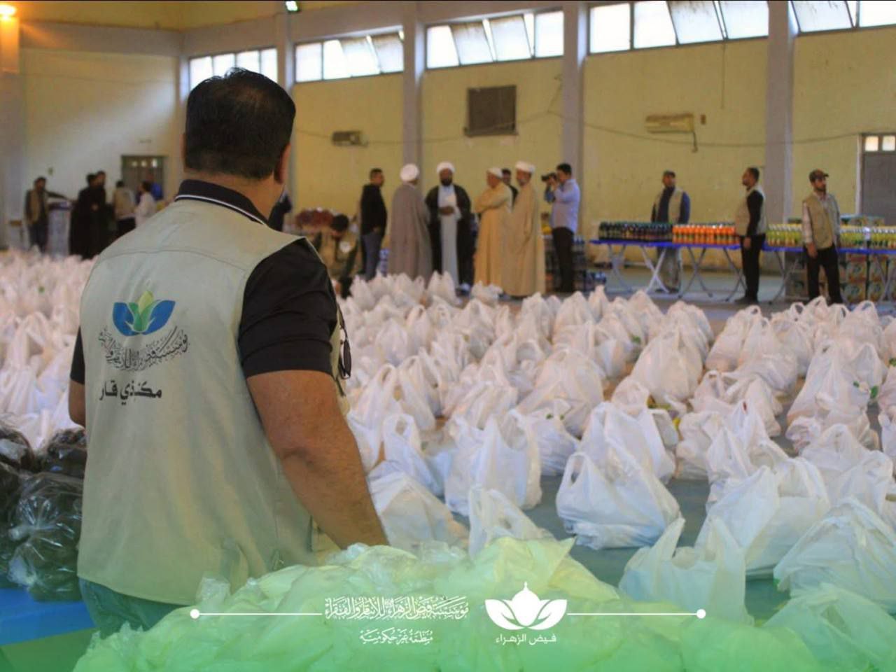 بالصور.. فيض الزهراء (ع) في ذي قار توزع 1500 سلة غذائية على العوائل المتعففة