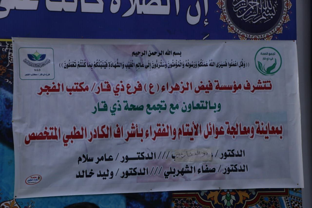 وقدمت المؤسسة، بحسب البيان، “شكرها وتقديرها لتجمع الصحة الخيري في ذي قار، وكل الكادر الطبي”.
