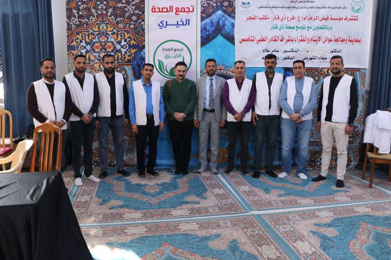 أعلنت مؤسسة فيض الزهراء (ع) مكتب قضاء الفجر شمال ذي قار، اليوم الثلاثاء، أنها استقبلت وبرعاية مكتب المرجع اليعقوبي، الكادر الطبي لتجمع الصحة الخيري.