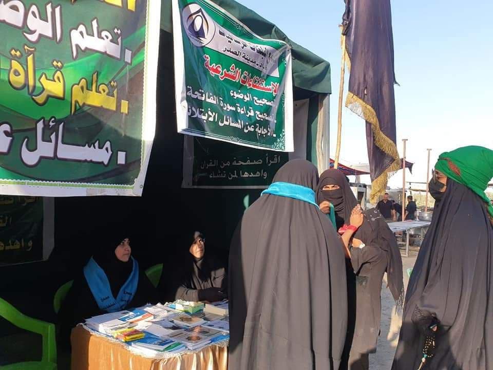 وأضاف، “إلى جانب تقديم النصائح عن الاحتشام وعدم لبس الشال الأخضر وكل مايلفت نظر الغير. وإقامة العديد من المحاضرات وتقديم الباجات التعريفية للزوار. وتوزيع منشورات للزيارة الأربعينية والمنشورات المهدوية، تفكيك رايات الأموال، فقرة إقرأ صفحة من القرآن واهديها للإمام المعصوم”.