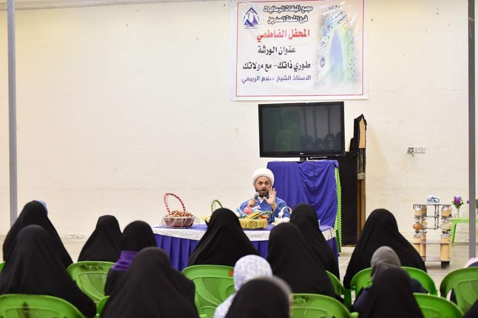 وأضاف، “وقد تضمنت الاحتفالية مجموعة من الفعاليات منها: فقرة الأسئلة والأجوبة، وأنشودة قدمتها مجموعة من الفتيات”، مشيراً إلى أن “المحفل تضمن إقامة ورشة تنموية تحت عنوان (طوري ذاتك مع مولاتك)، قدمها مدرب التنمية البشرية الشيخ سلام الربيعي، وتمحورت حول التخطيط الاستراتيجي وتحديد الأهداف، والسعي وراء إنجازها، وتحديد نقاط القوة والضعف في الشخصية”.