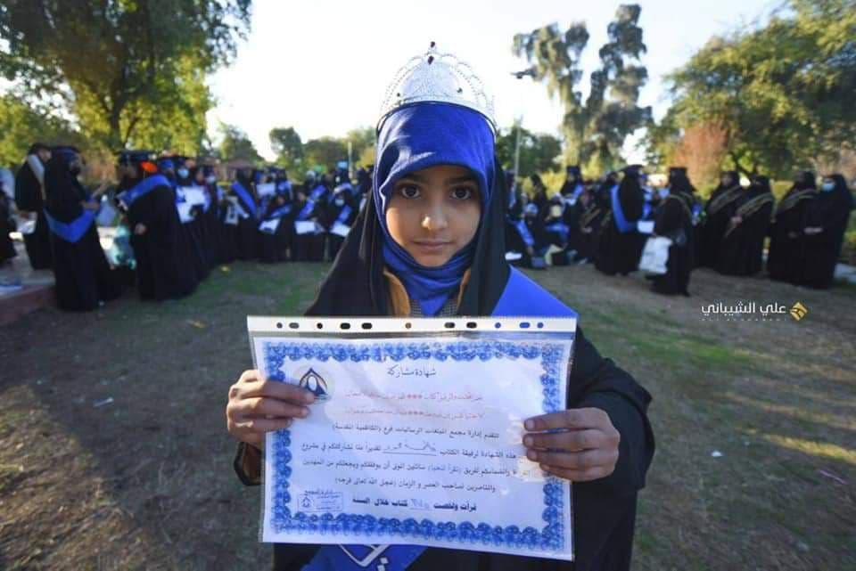 وأضاف مجمع المبلغات، “ثم توالت الفعالبات بتتويج أميرات القراءة (وهن المشاركات اللاتي قرأن أكثر عدد كتب في مجموعتهن). ختاماً توزيع شهادات المشاركة والهدايا إلى جميع المشاركات في المشروع. مع توزيع الشهادات التقديرية للأخوات المبلغات المشرفات على المشروع، بعد إكمال حفل الختام انطلقت المشاركات لزيارة الإمامين الكاظميين مع توزيع الفولدرات الخاصة بيوم القراءة العالمي”.