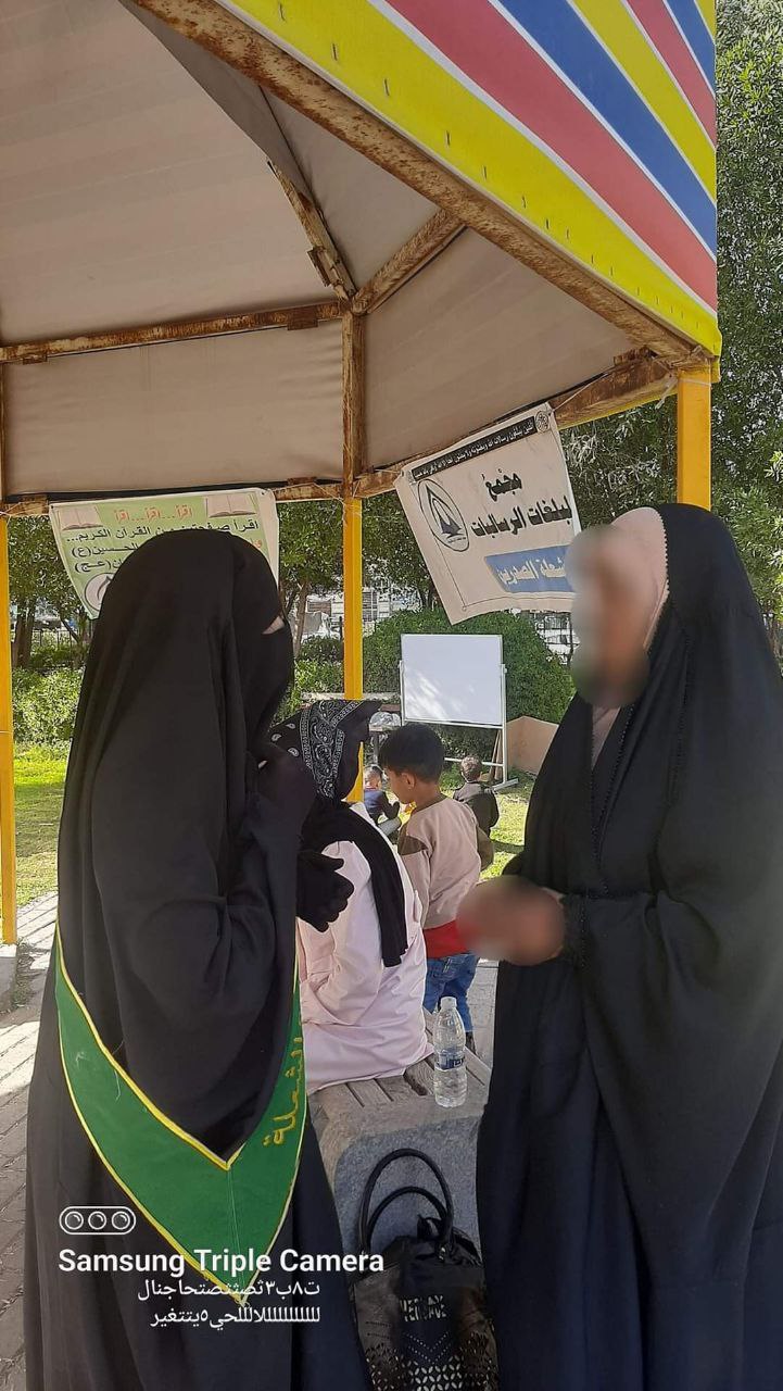 وأضاف، “فقرة الأسئلة العقائدية للأطفال وتعليمهم أصول الدين وفروع الدين وأسماء الأئمة المعصومين بالترتيب وخذ هدية. تقديم النصائح للفتيات ممن يرتدين الإيشاربات الصغيرة المزينة لعصابة الرأس، وتقديم النصائح والإرشادات والتوجيهات للأخوات المتواجدات في المتنزه”.
