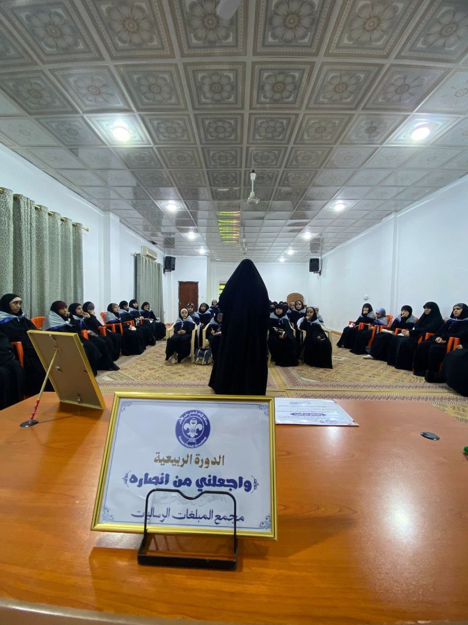 يواصل مجمع المبلغات الرساليات في قضاء الحي، برنامجه التربوي ضمن فعاليات الدورة الربيعية، وسط أجواء إيمانية مفعمة بروح الانتظار الواعي والانتماء المهدوي.