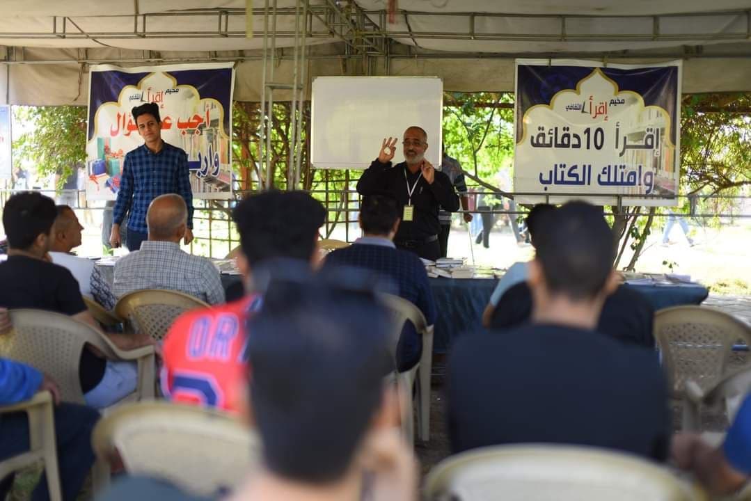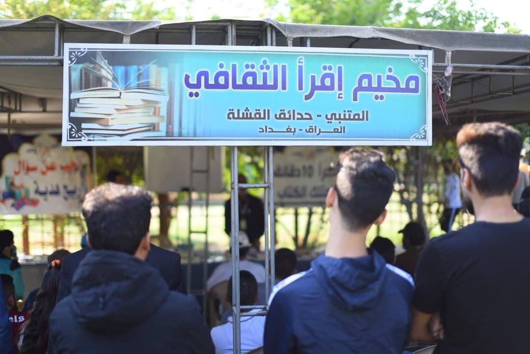 افتتحَ مخيم اقرأ الثقافي، اليوم السبت، على حدائق القشلة شارع المتنبي بغداد، معرض الكتاب فعالياته اللطيفة بأسئلةٍ قرآنيّة وتاريخيّة وجغرافيّة، حيث يحصل كلّ مجيبٍ بالجوابِ الصحيح على كتابٍ لطيفٍ من كتبِ المعرض.