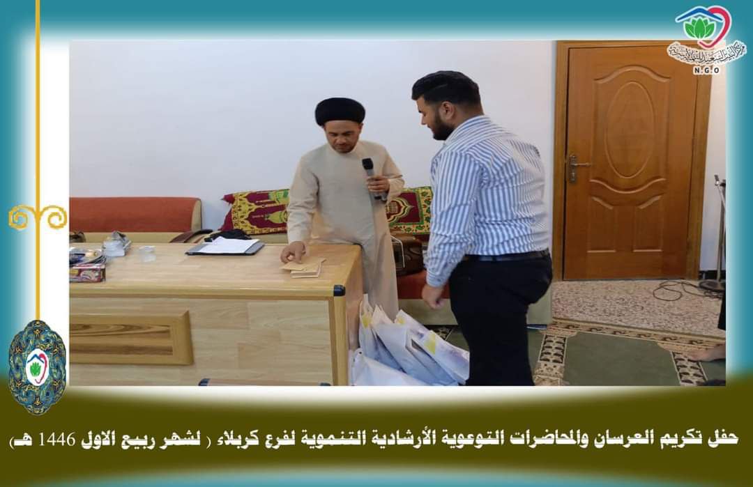 وأضاف، أن “مدير المركز السيد علي الحسيني، ألقى محاضرة إرشادية تربوية للعرسان، أوضح فيها الحديث عن أهم المشكلات التي تواجه الزوجين وكيفية حلها، لترتقي لحياة أفضل، فيما اختتم المحاضرة، بفتح باب النقاش والإجابة على الأسئلة، بالإضافة إلى توزيع الهدايا على المتزوجين، دعماً لهم مادياً ومعنوياً”.