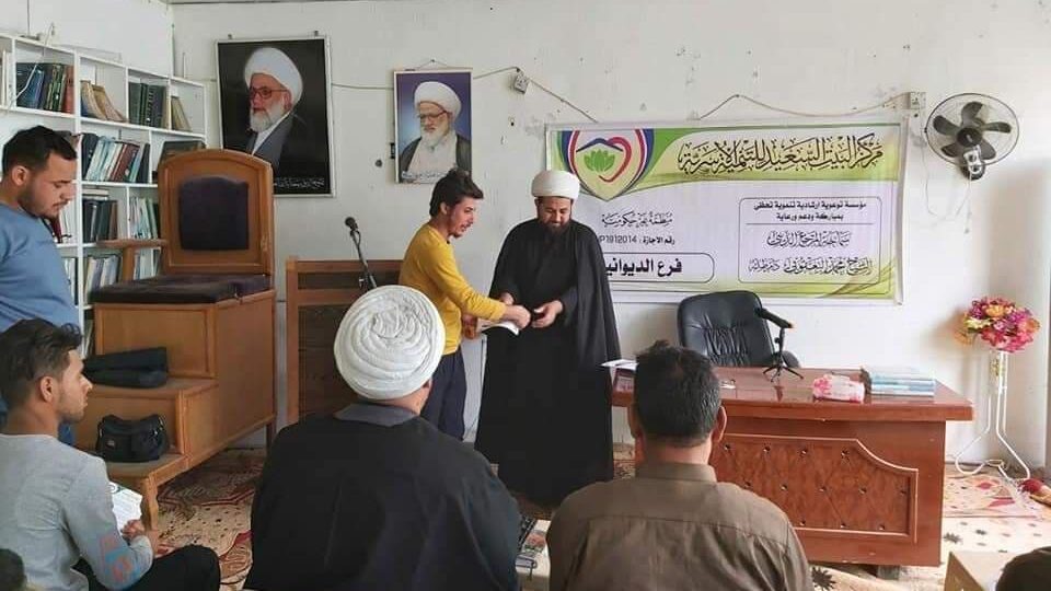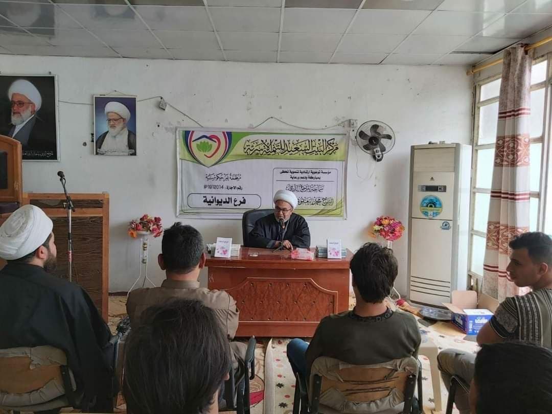 وأشار المركز، إلى أن “لجنة الدعم والإرشاد النسوي/لجنة المربيات الفاضلات، أقامت المحاضرة الخاصة بالنساء الكوادر النسوية الخاصة بمركز البيت السعيد للتنمية الأسرية في الديوانية، محاضرة للمتزوجات الجدد وكانت المحاضرة للحاجة أم حيدر، وبعد انتهاء المحاضرة تم توزيع هدية المرجعية على المتزوجات”.