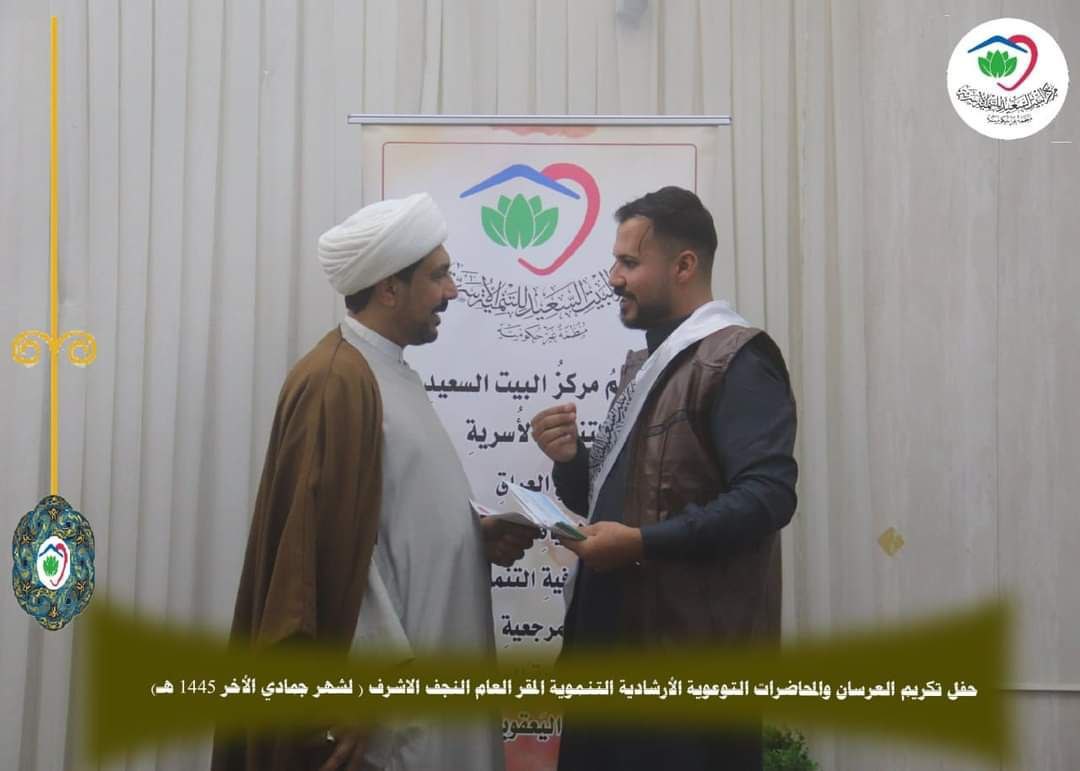 ويواصل مركز البيت السعيد للتنمية الأسرية المقر العام في النجف الأشرف التابع لمكتب سماحة المرجع الديني الشيخ محمد اليعقوبي (دام ظله)، خدمته التوعوية والتنموية التثقيفية تحت عنوان (نحو أسرة سعيدة).