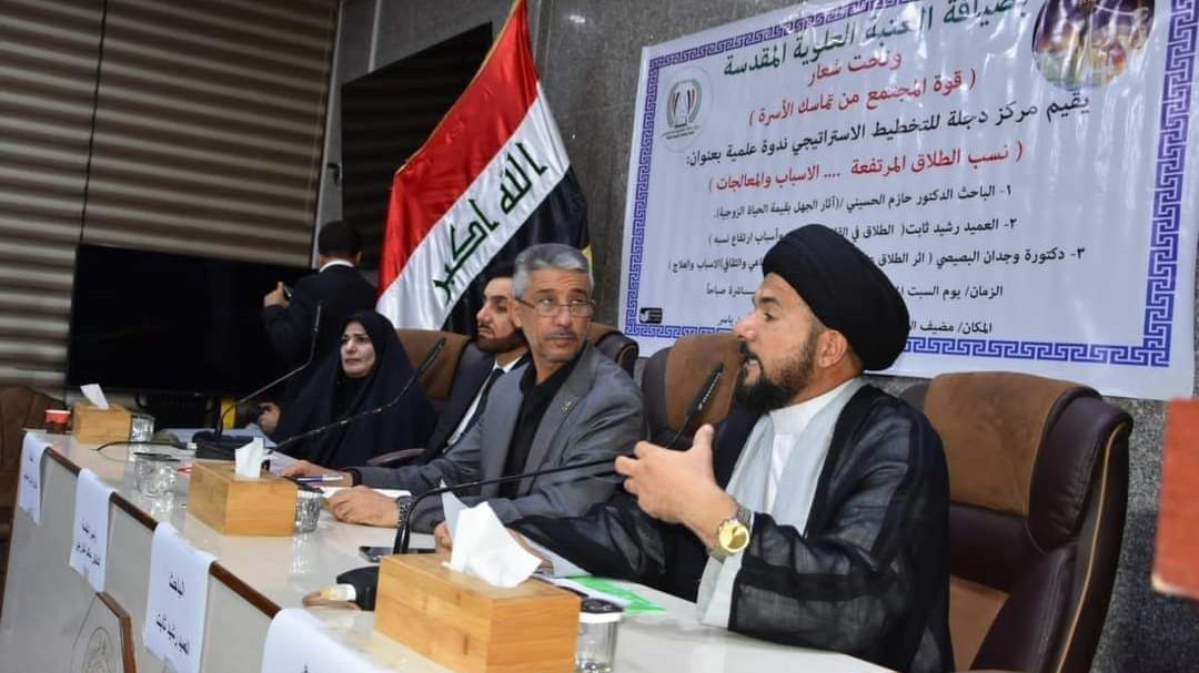 أعلن مركز دجلة للتخطيط الاستراتيجي، اليوم الثلاثاء، عن إقامة ندوة علمية، بعنوان: (النسب المرتفعة للطلاق الأسباب والمعالجات)، على قاعة العتبة العلوية المقدسة.