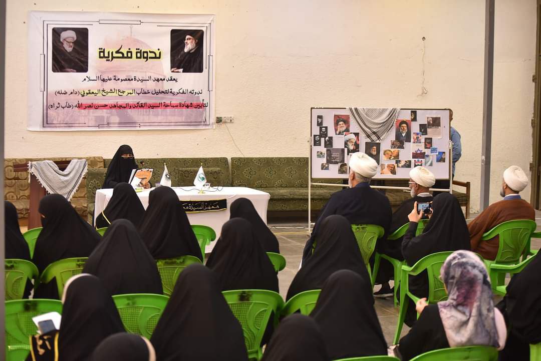 وذكر بيان للمعهد، تلقت “النعيم نيوز” نسخة منه، أن “معهد السيدة معصومة (ع) للتبليغ والخطابة، نظم ندوة فكرية بعنوان (خطابات المرجعية قبس من هدي المعصوم)، لتسليط الضوء على بيان تأبين الأمين العام لحزب الله السيد حسن نصر الله الصادر عن المرجع الديني الشيخ محمد اليعقوبي (دام ظله)”.