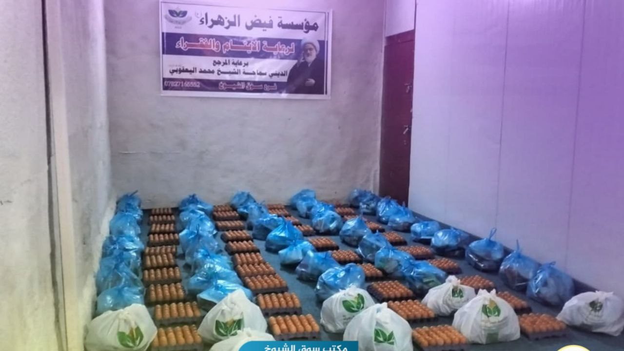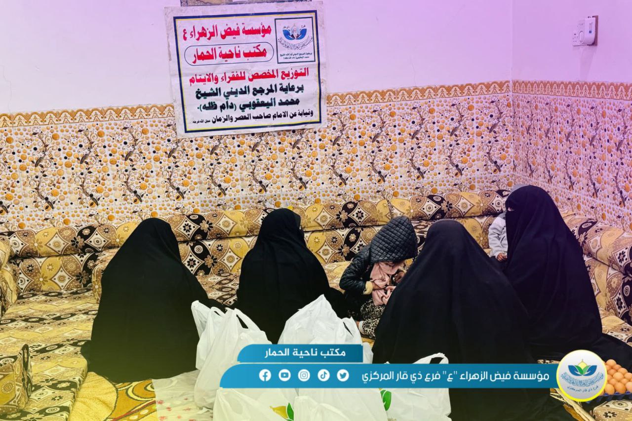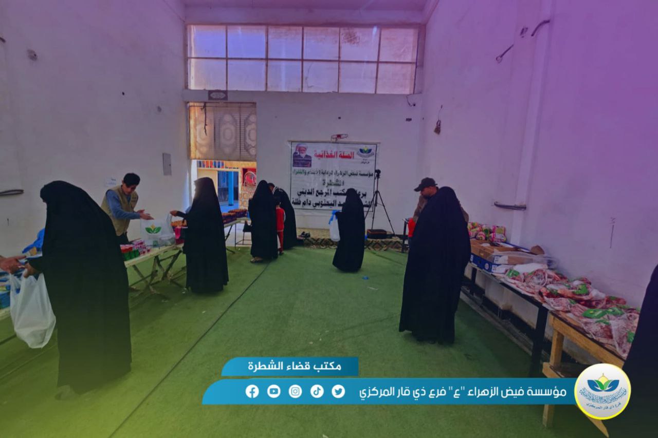 بالصور.. مكاتب فيض الزهراء (ع) في ذي قار توزع سلات غذائية على العوائل الكريمة