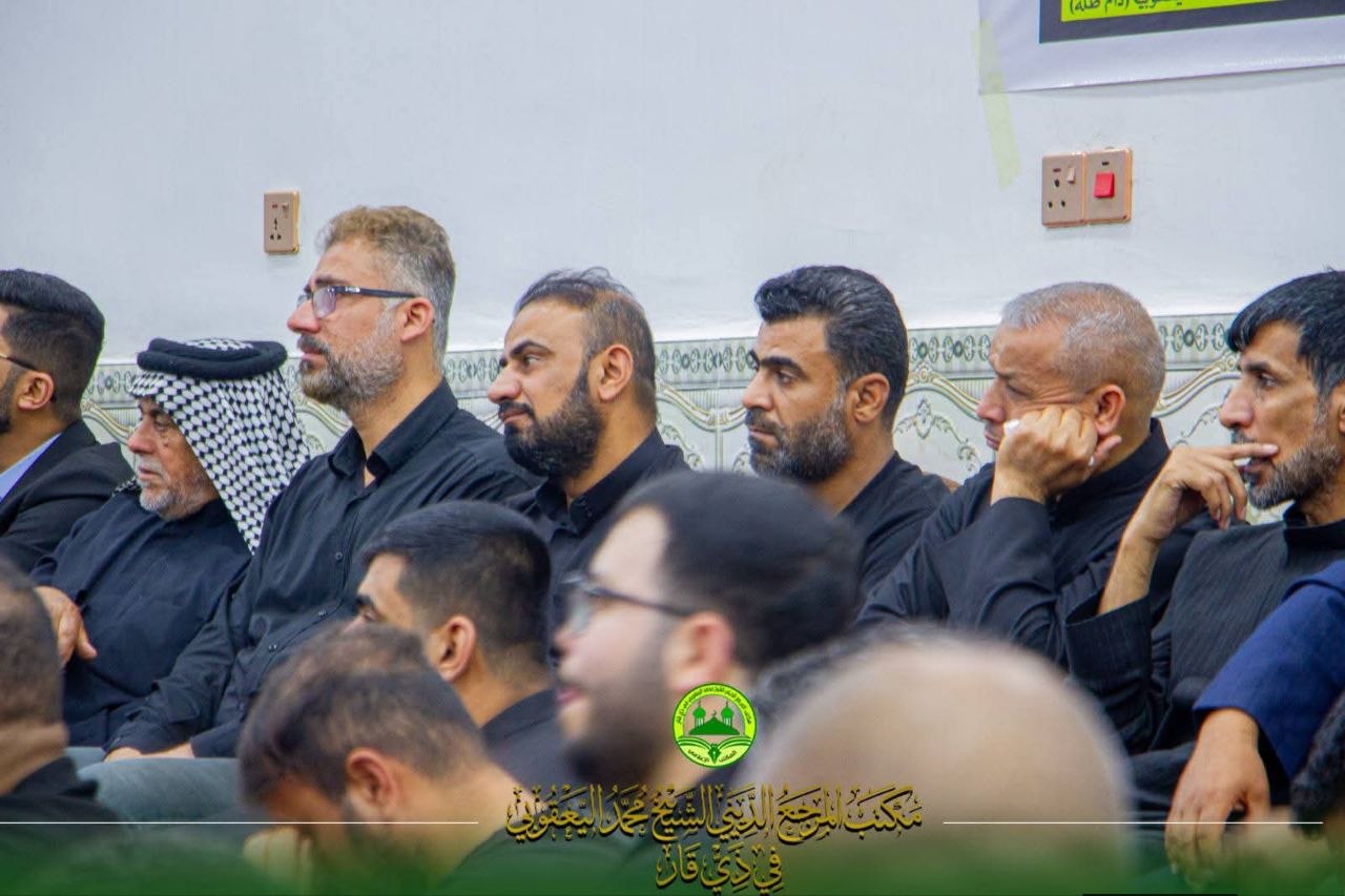 أحيى مكتب سماحة المرجع الديني الشيخ محمد اليعقوبي في ذي قار، عبر هيئة الشعائر والمواكب الحسينية التابعة له، ذكرى شهادة الإمام جعفر الصادق (ع)، وسط حضور واسع من رجال الدين وجمع من المؤمنين.