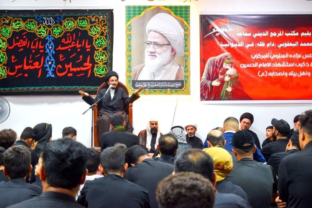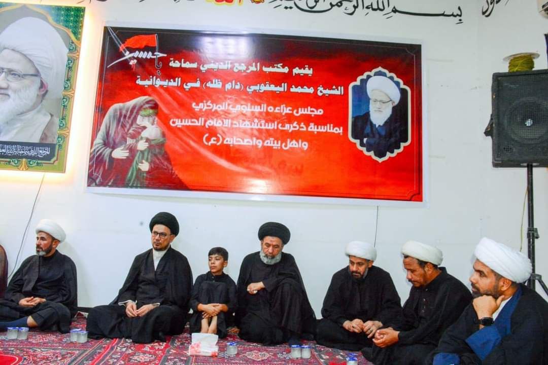 وذكر بيان لمكتب المرجعية، تلقت “النعيم نيوز” نسخة منه، أن “مكتب سماحة المرجع الديني الشيخ محمد اليعقوبي في الديوانية، أقام مجلس عزاءه السنوي المركزي، بمناسبة ذكرى استشهاد الإمام الحسين (ع) وأهل بيته وأصحابه، خلال العشرة الثانية من شهر محرم الحرام، وبحضور جمعٍ غفيرٍ من المؤمنين، في حسينية ومصلى الأبرار في مركز المحافظة”.