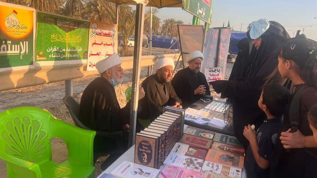 وأشار، إلى أن “المخيم شهد فقرة صحح قراءة سورة الحمد وخذ هدية، فقرة القصص وللمواعظ القصيرة، فقرة بصمة عهد للرجال وللنساء، فقرة رسوم الكاريكاتير. فقرة خذ رسالة من الإمام المهدي المنتظر، توزيع فولد يخص المناسبة كلمات المرجعية مع زيارة الأربعين. تعليق الأحاديث والمواعظ على ظهر الزائرين، للاستفادة منها على طول الطريق، الخيمة الزينبية للمبلغات الرساليات. جلسات حوارية مع الزوار”.